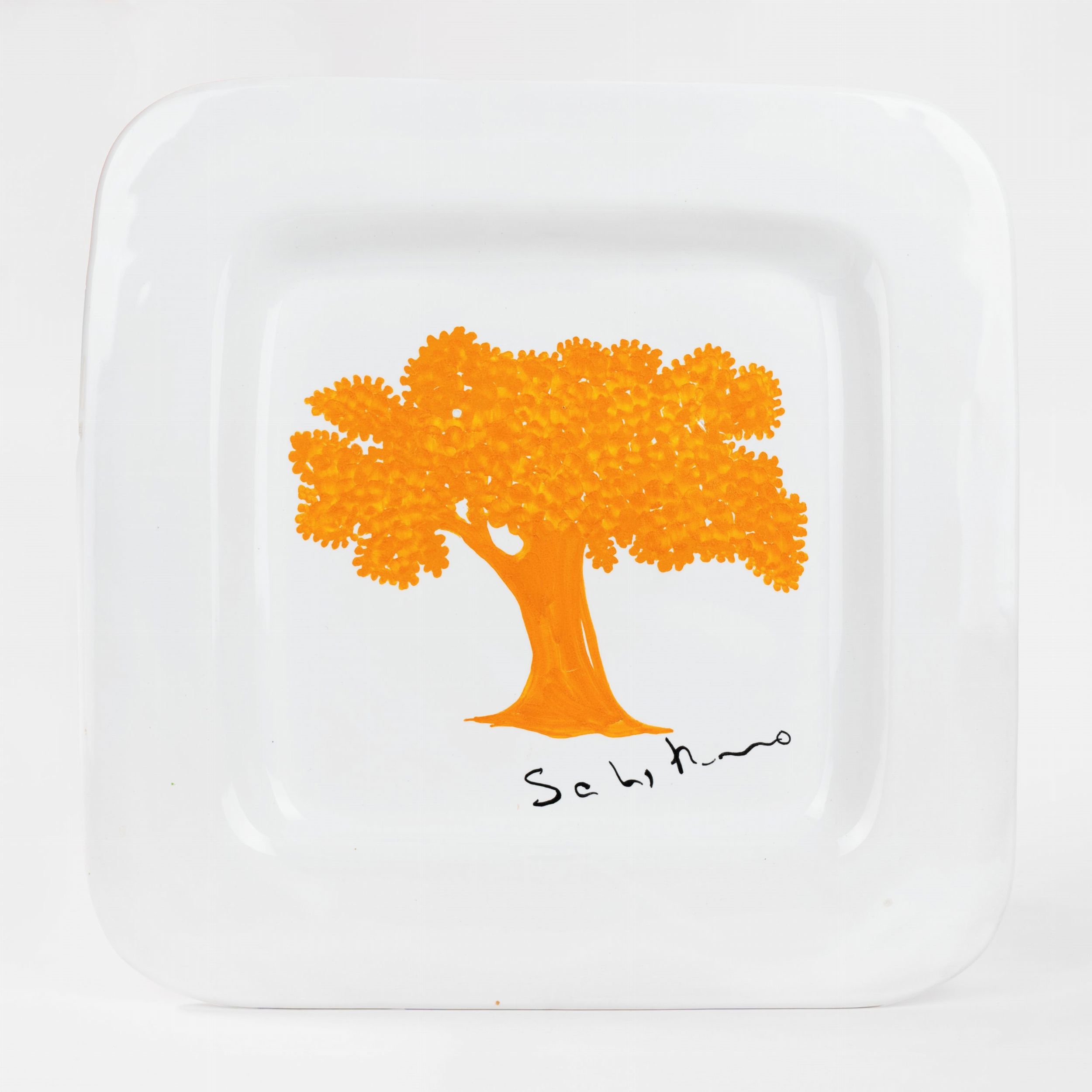 piatto in ceramica smaltata in policromia, es. 153/250, cm 32,5 x 32,3 x 4