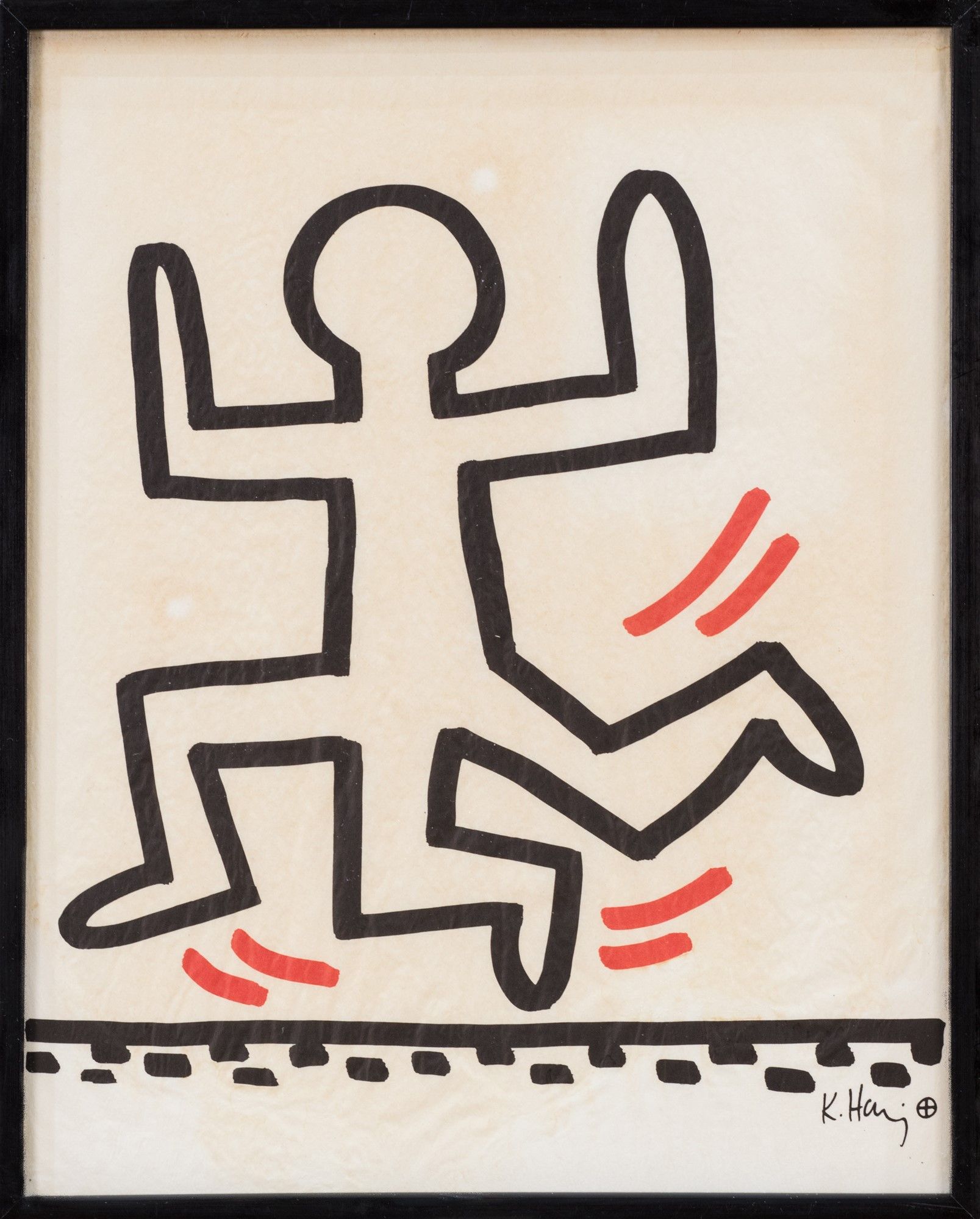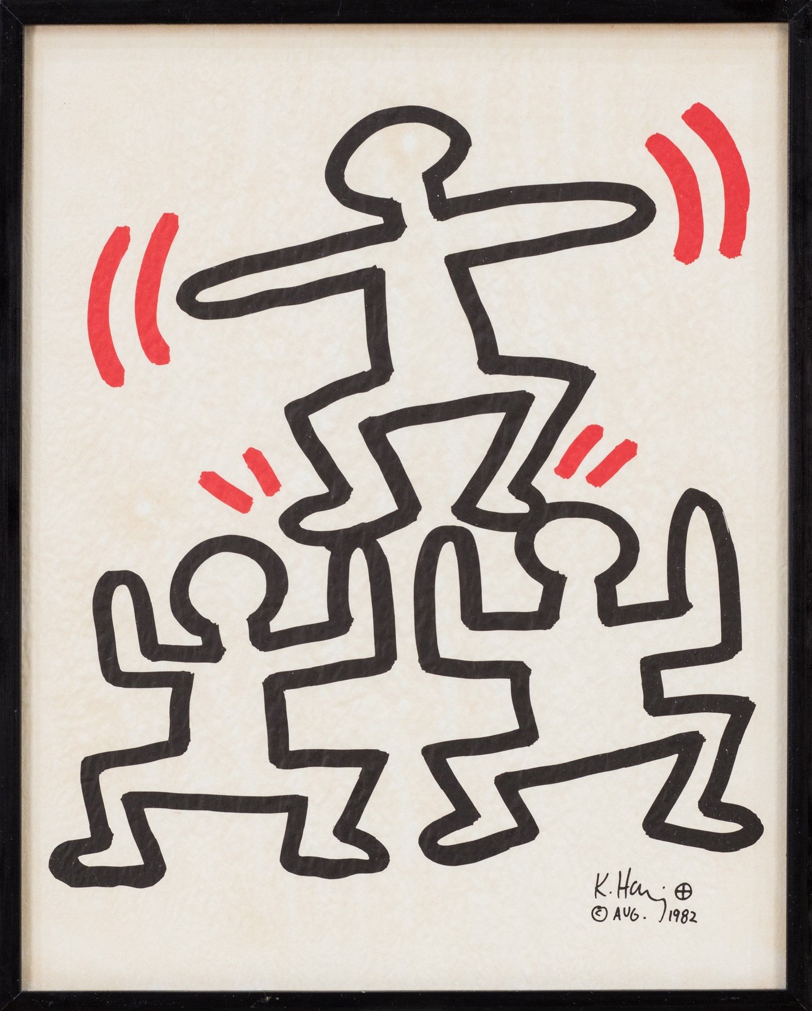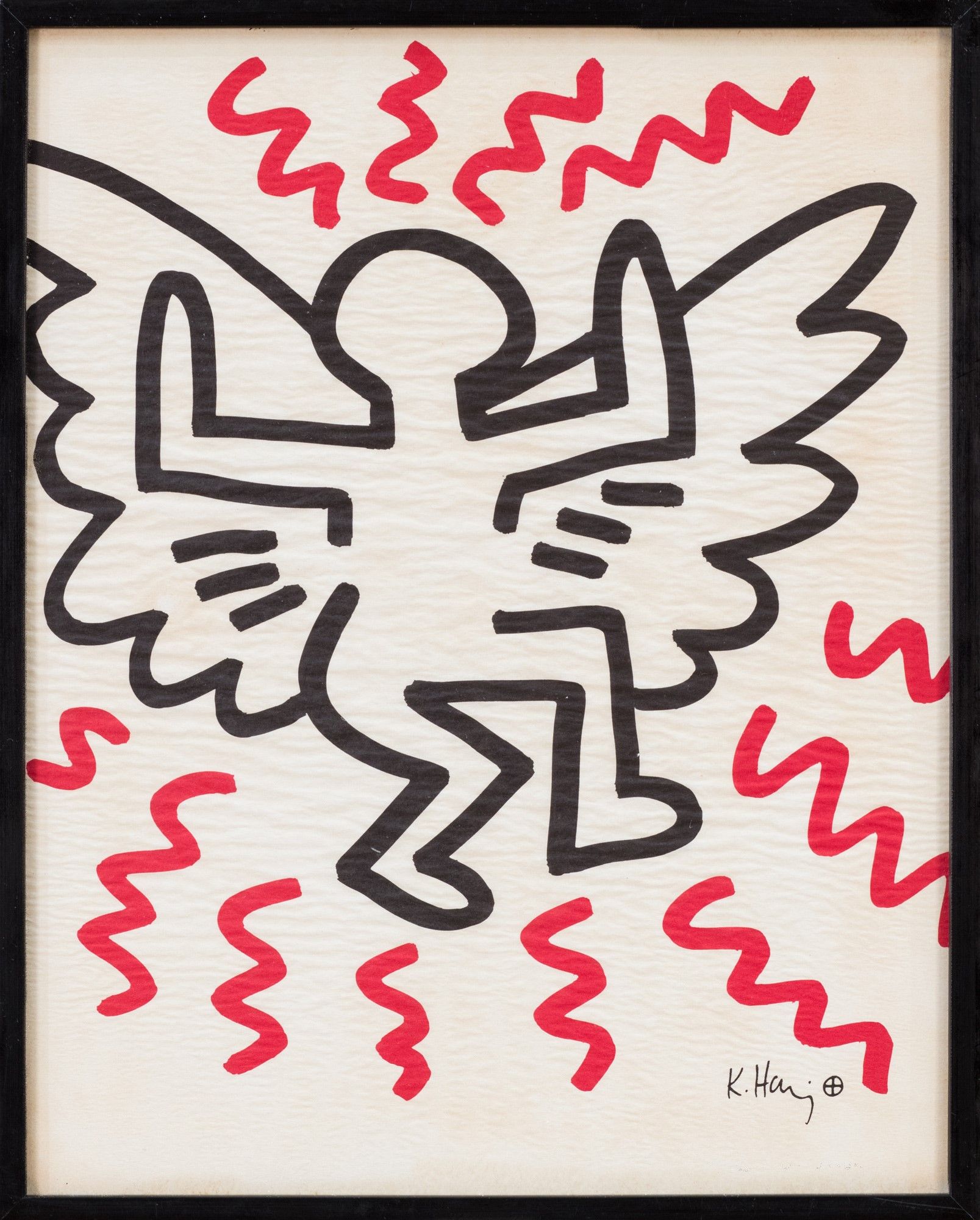 cm 29,9 x 24 (misure di ciascun foglio) 1982 Serie completa di 6 litografie a colori su carta velina, dall'edizione di 70 ess. firmati nella lastra oltre a 5 serie firmate da Haring, edite da Bayer AG in occasione dell'immissione in commercio del farmaco cardiaco Sali-Adalat. 5 entro cornici originali con al verso adesivo BH Rinx W. Germany; 4 con al verso adesivo con riproduzione di un foglio della serie e la scritta Sali-Adalat. Si presenta inoltre, unito alle 6 litografie, un raro Lucchetto anch'esso prodotto per il farmaco Sali-Adalat della Bayer, in confezione originale.