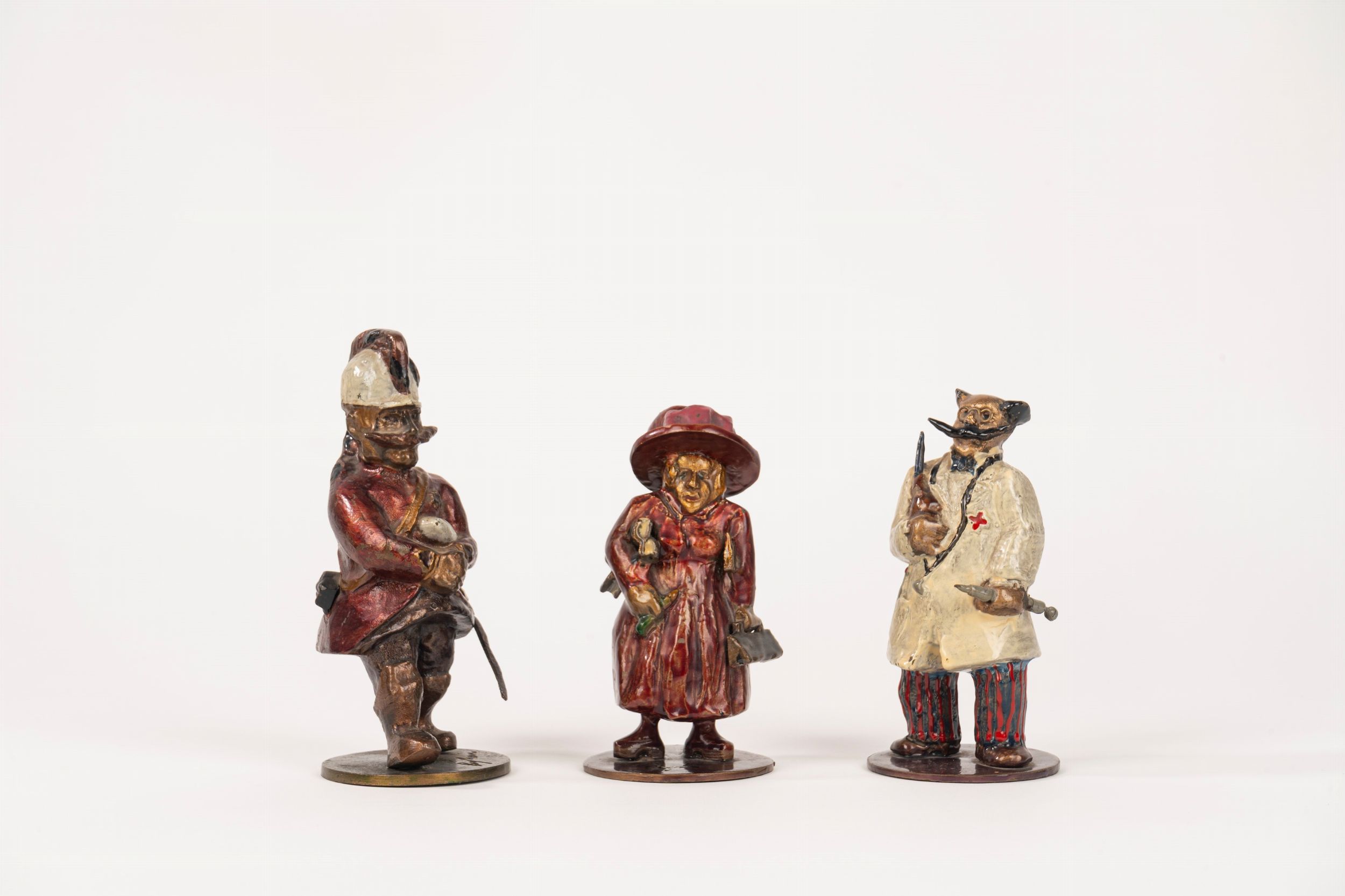 3 bronzi smaltati, esemplari non numerati, cm 16,5 x 8 x 7