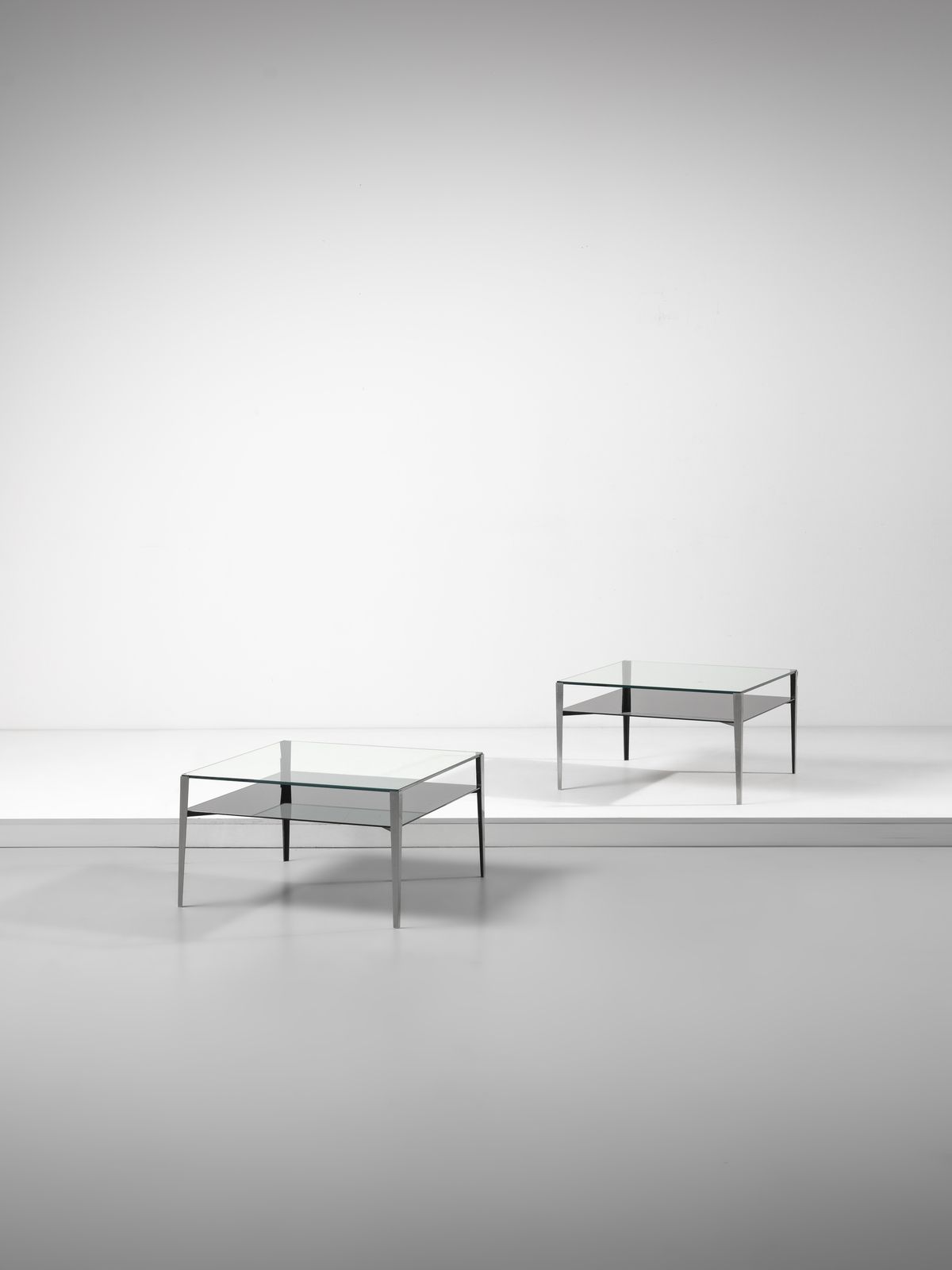 Coppia di tavolini da salotto versione quadrata del mod. 2341 per Fontana Arte, [..]