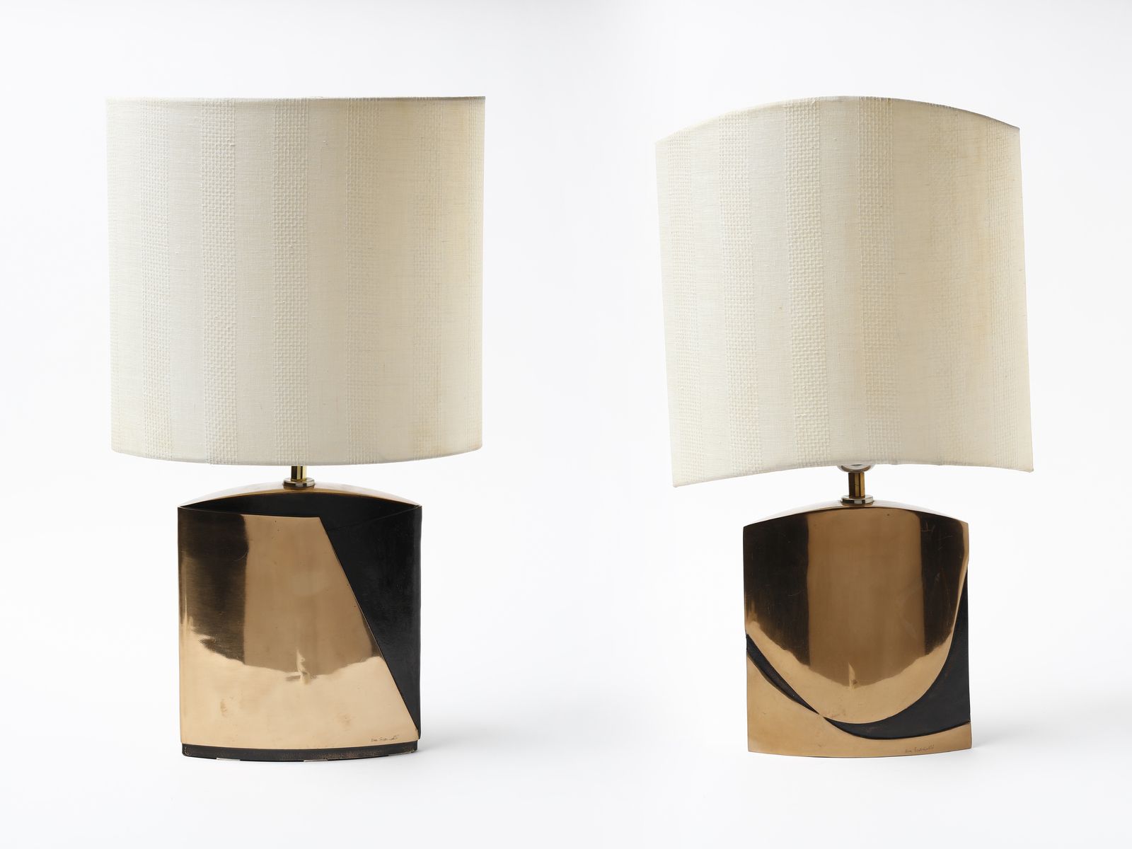 Anni Settanta / Ottanta.Firmate alla base e con etichetta della manifattura.Dimensioni: 65,5 x 36,5 x 19,5 cm. 62,5 x 34,5 x 18,5 cm