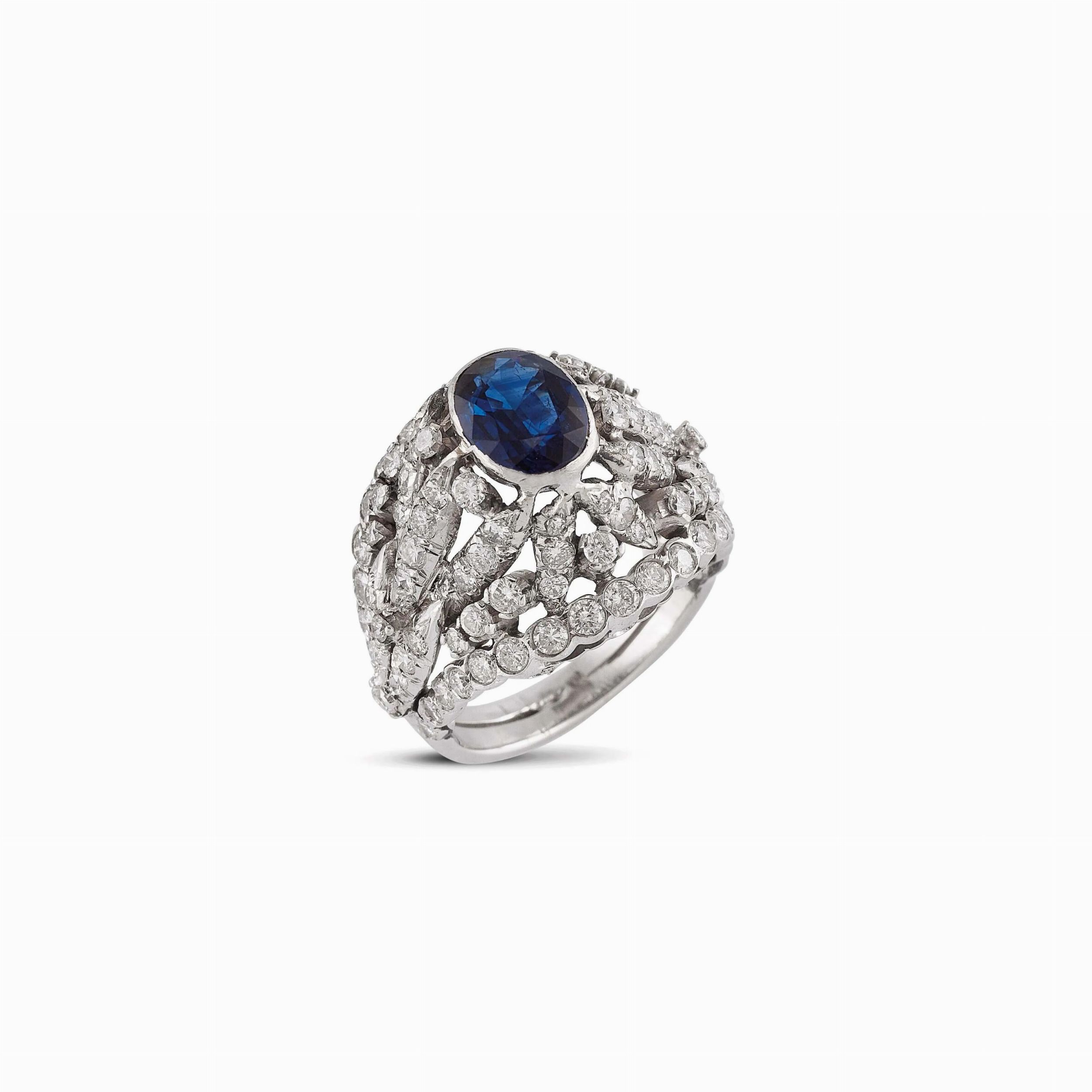 ANELLO A CUPOLA CON ZAFFIRO E DIAMANTI