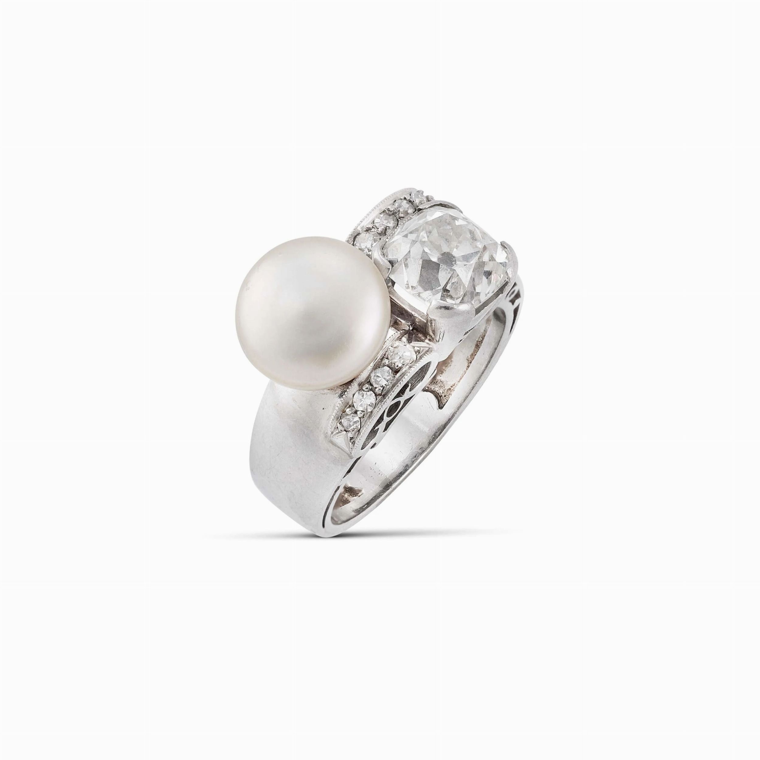ANELLO A FASCIA CON PERLA NATURALE E DIAMANTI