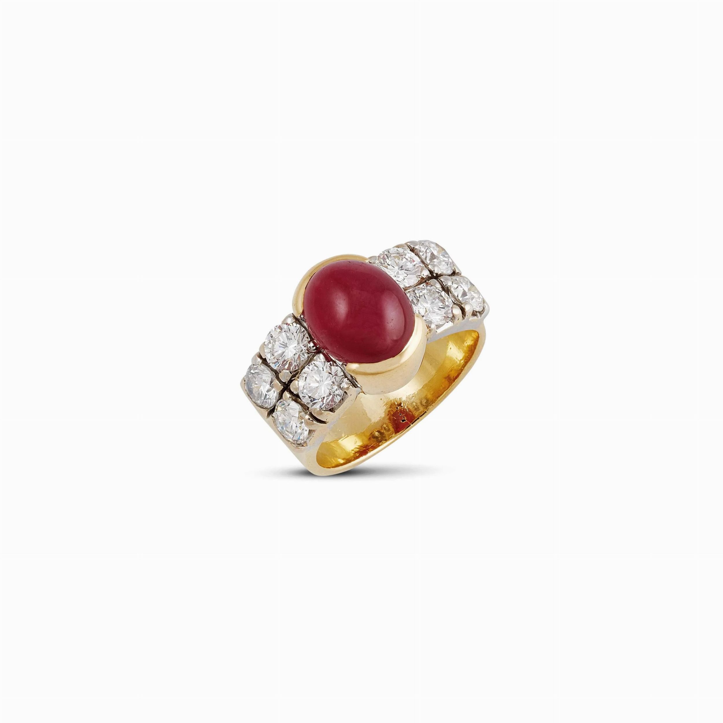 ANELLO A FASCIA CON RUBINO E DIAMANTI