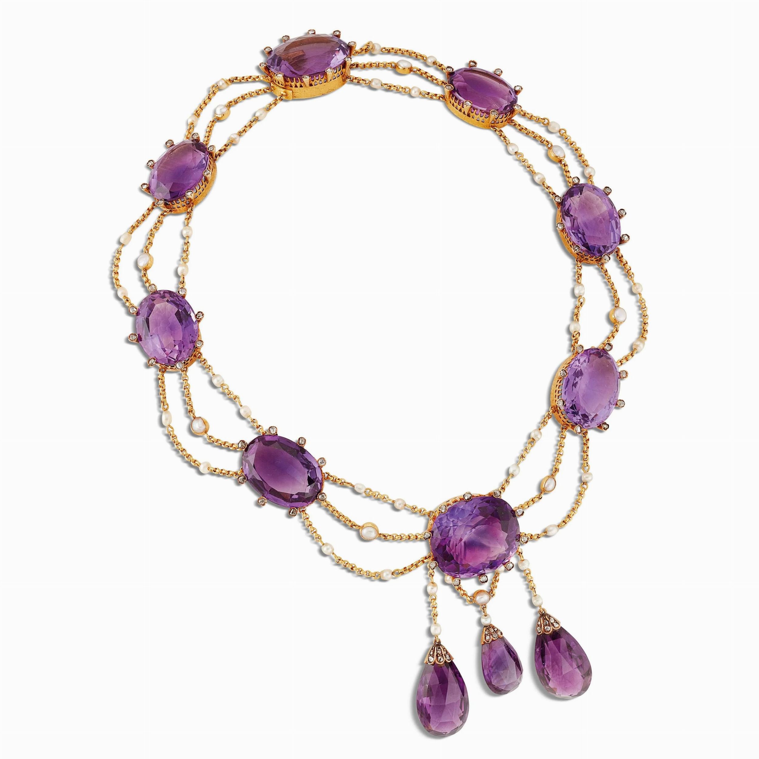 COLLANA CON AMETISTE PERLE E DIAMANTI