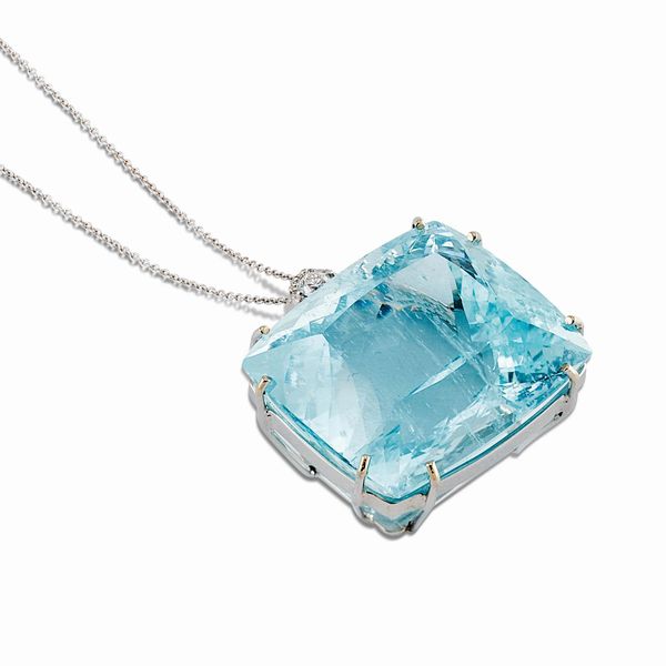 COLLANA CON GRANDE ACQUAMARINA E DIAMANTI