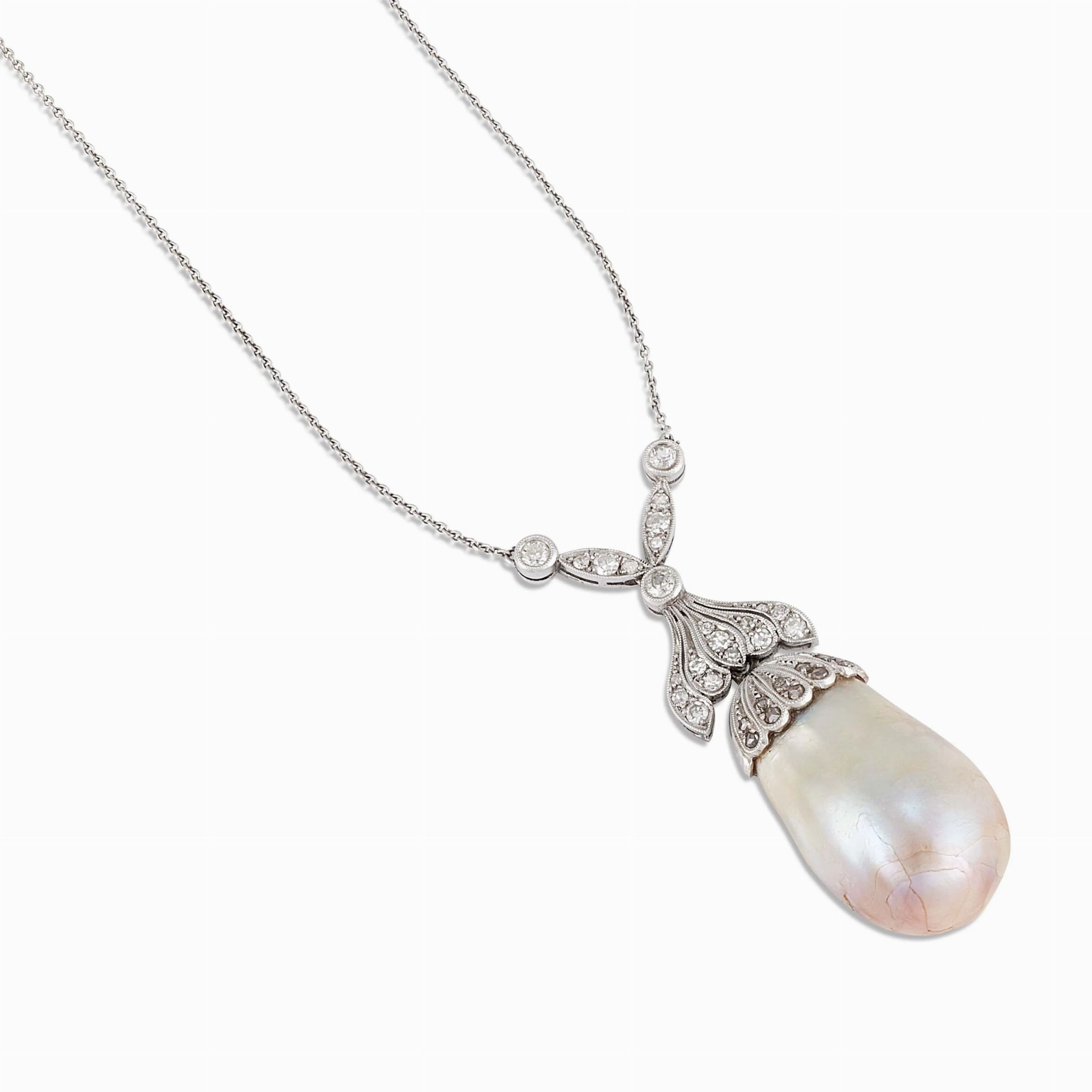 COLLANA CON PERLA NATURALE BAROCCA E DIAMANTI