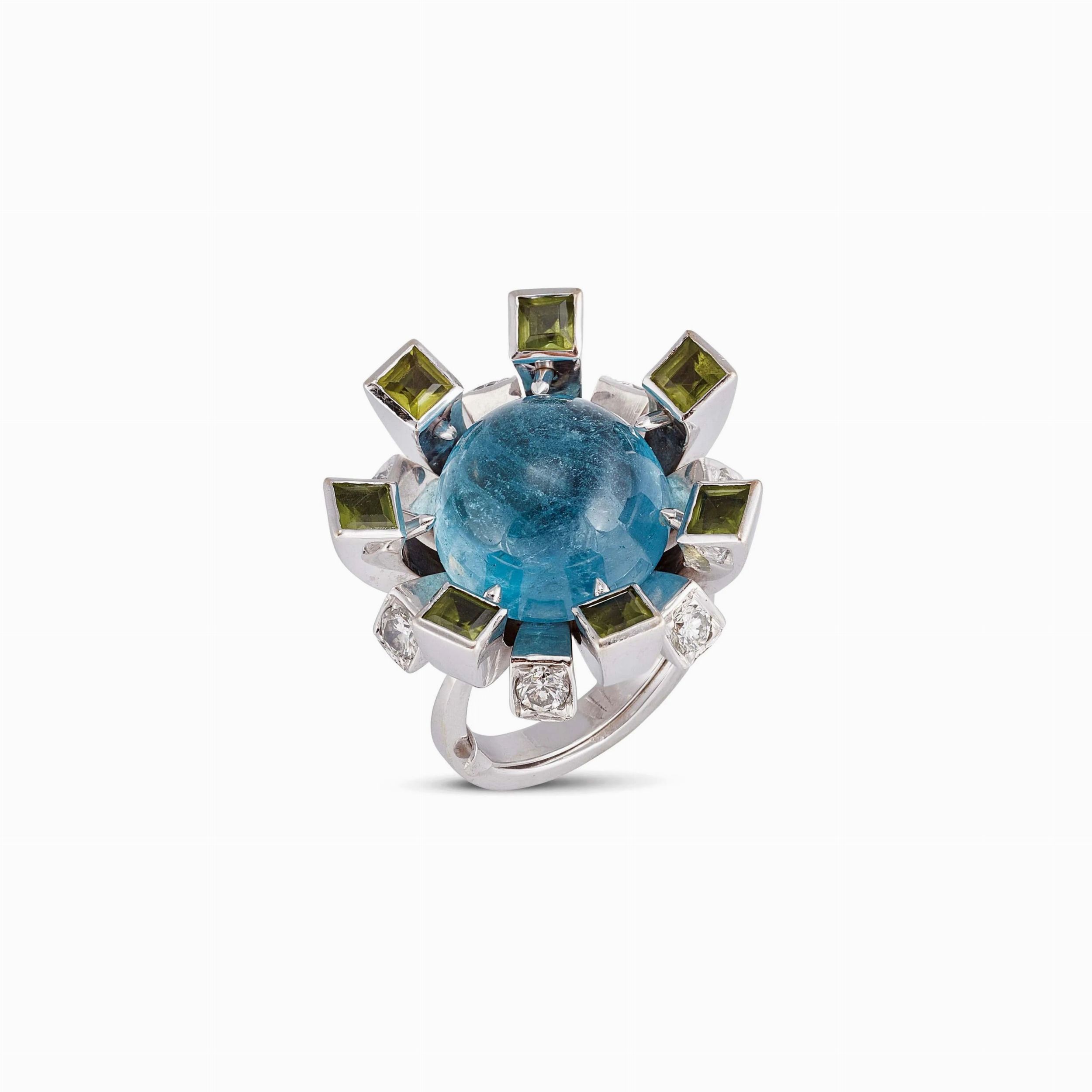 GRANDE ANELLO CON ACQUAMARINA PERIDOT E DIAMANTI