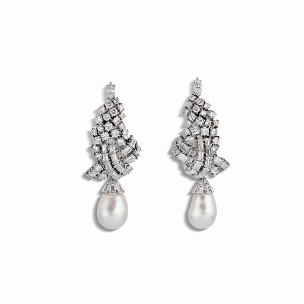 PAIO DI ORECCHINI PENDENTI CON PERLE E DIAMANTI