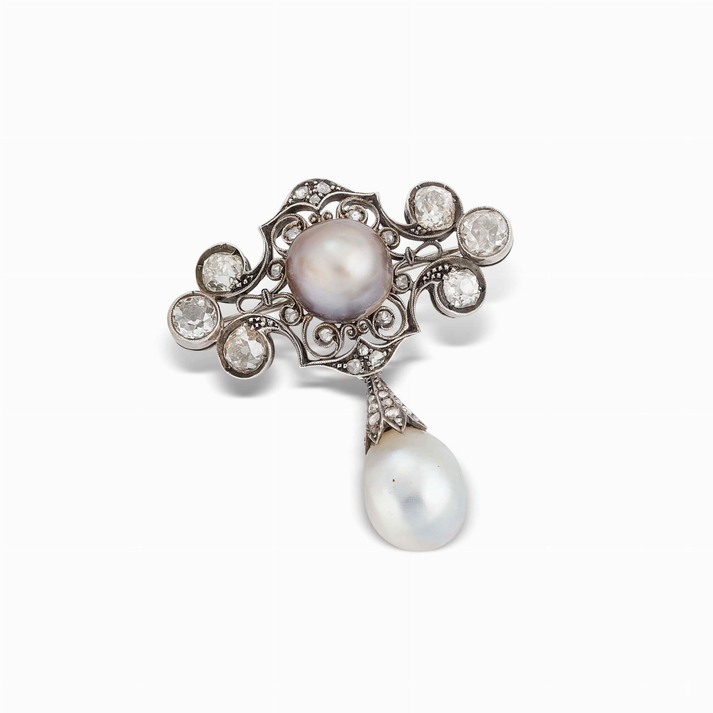 SPILLA CON PERLA NATURALE E DIAMANTI
