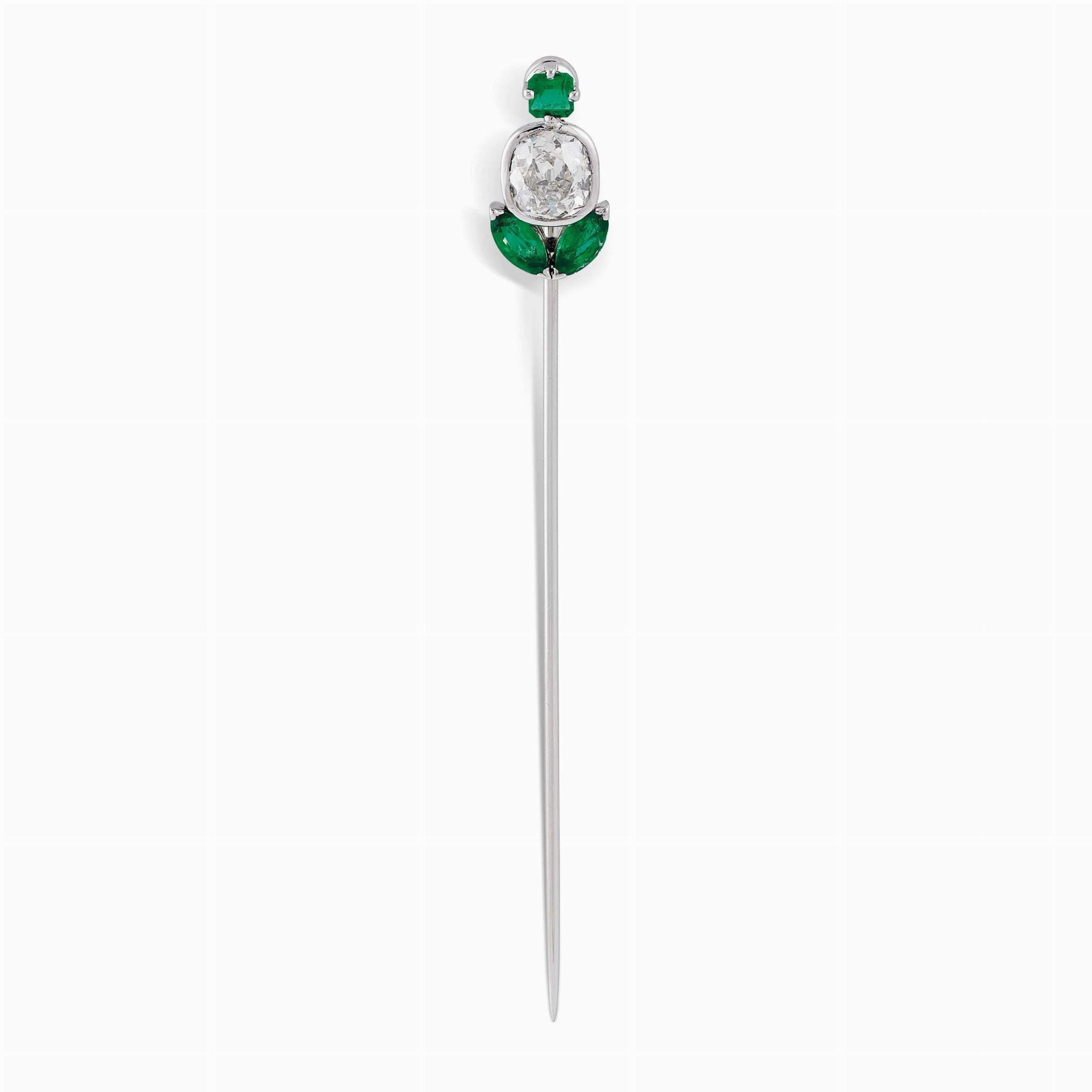 SPILLA DA CRAVATTA CON DIAMANTE E SMERALDI
