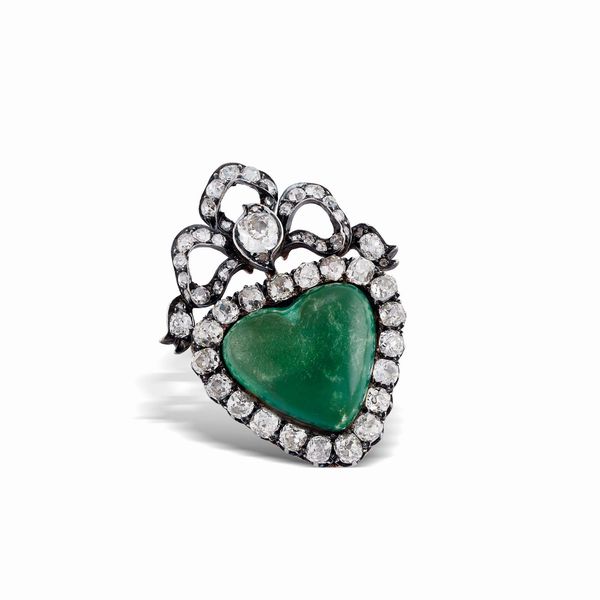 SPILLA/PENDENTE A FIOCCO CON TURCHESE E DIAMANTI