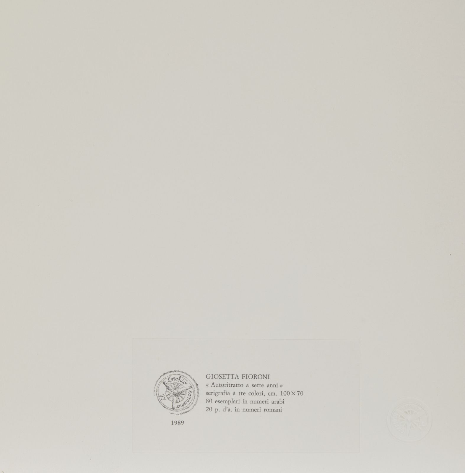 firma e tiratura a matita, es. 70/80timbro a secco Il Torchio romanofiligrana Fabriano. sul retro: etichetta descrittiva stampatore Il Torchio romanoEDIZIONE TOTALE80 esemplari