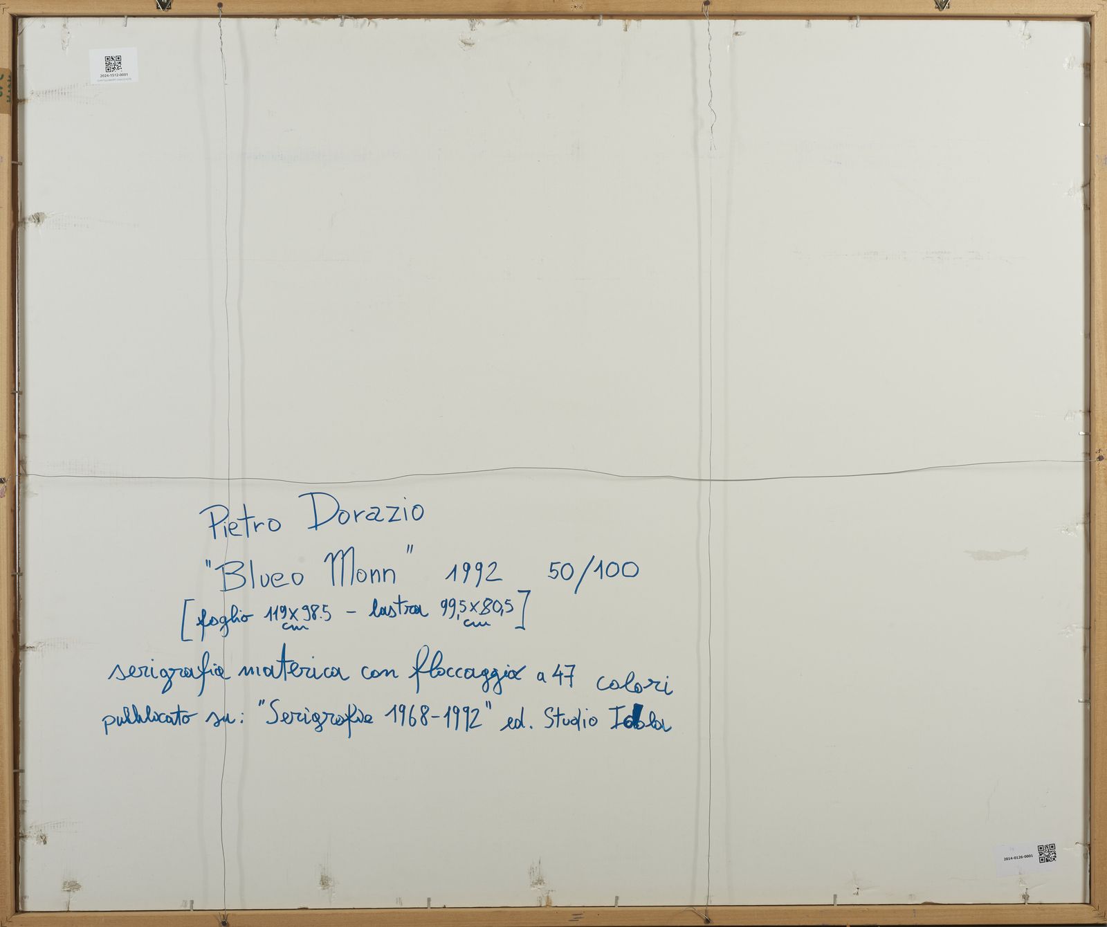 firma e tiratura a matita, es. 50/100 EDIZIONE TOTALE200 esemplari, di cui 100 esemplari numerati da 1/100 a 100/100. 50 esemplari numerati da I/L a L/L. 25 lettere dell'alfabeto dalla a alla z. 20 p.d.a.BIBLIOGRAFIAPiero Dorazio. 10 serigrafie 1968-1992, a cura di Claudio Spadoni, Studio Idola, Forlì, tav. 6.