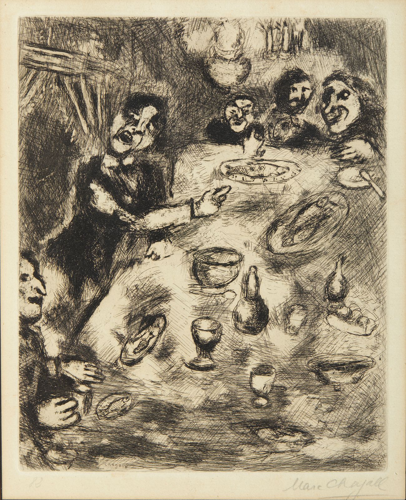 firma a matita, tav. 82firma in lastrasul retro: titoloeditore:Tériade, ParigiDimensioni lastra: 29,5 x24 cmBIBLIOGRAFIAMarc Chagall, 100 acquaforti per le Favole di La Fontaine, Graphis Arte, Livorno / Toninelli, Milano n. 82.Il foglio fa parte di una serie di opere edite da Ambroise Vollard nel 1926 e successivamente riprese da Tériade, Paris, nel 1950. Questa incisione č inclusa nell'edizione in due volumi delle Favole, Fables, Eaux-fortes originales de Marc Chagall, pubblicata da Tériade nel Febbraio 1952PROVENIENZACollezione privata, Padova
