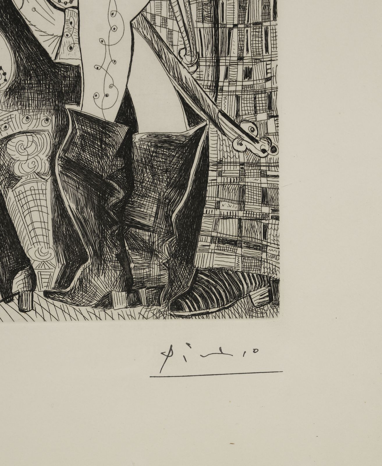 firma a stampa, tiratura a matita, es 20/50dimensione lastra 50,5x63cmstampatore: Crommelynckeditore: Galerie Louise Leiris, ParisEDIZIONE TOTALE50 esemplari + 15 p.d.a.BIBLIOGRAFIABloch n. 1871Baer n.1876