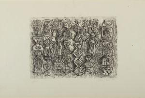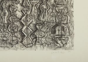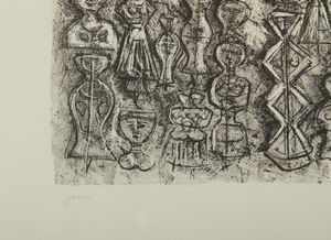firma, data e iscrizione prova di stampafiligrana C.M.Fabrianosul retro: timbro Galleria d'arte Zanini, Roma dimensione lastra: 17,5x24,5cmEDIZIONE TOTALEalcune prove in parte datate e firmate. E' nota una prova firmata e con la scritta: prova di stampa dove la stessa lastra è tirata due volte.BIBLIOGRAFIAMeloni, n. 176