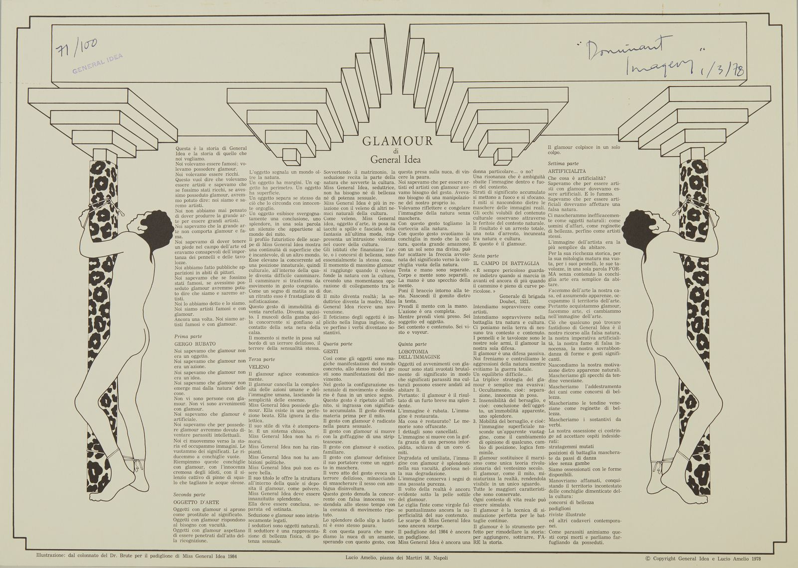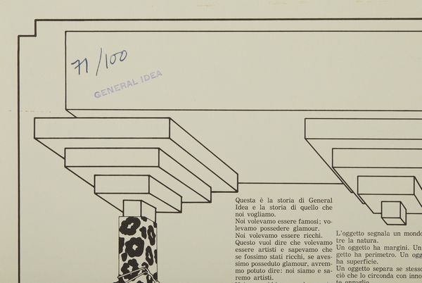 timbro General Idea, titolo, data e tiratura, es. 71/100editore: Lucio Amelio, Napolicopyright General Idea e Lucio Amelio, 1978SITOGRAFIAhttps://www.moma.org/collection/works/121434PROVENIENZACollezione Lucio Amelio, NapoliCollezione privata, Napoli
