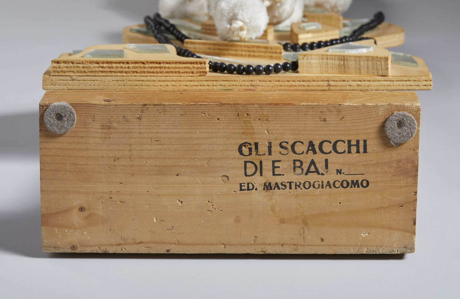 sotto la base: timbro Ed. Mastrogiacomo e tiratura a matita, es. 8/30Edizioni Mastrogiacomo, PadovaEDIZIONE TOTATLE30 esemplari +VBIBLIOGRAFIA DI RIFERIMENTOGli Scacchi di Baj, Mastrogiacomo Edizioni - Padova, con introduzione di Pietro Bellasi e testi di Olivier Revault d'Allones.