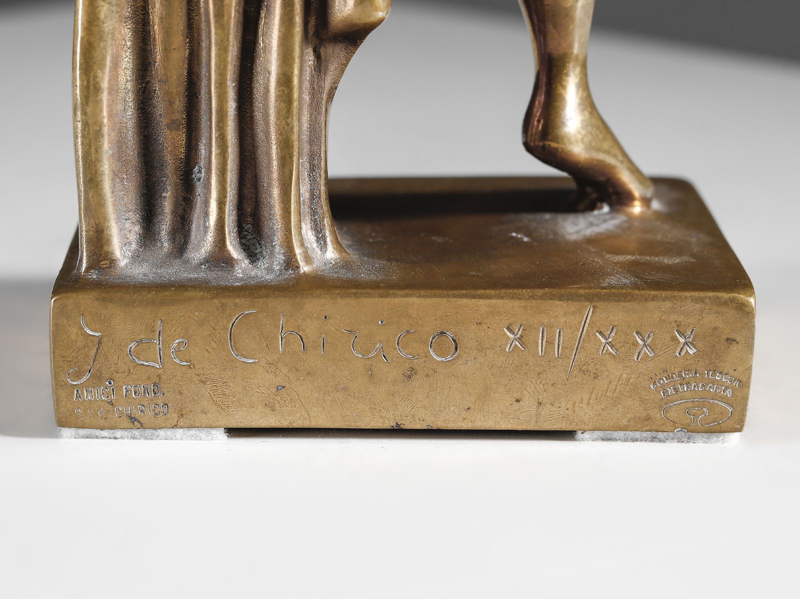 firma e tiratura incisi alla base, es. XII/XXXedizione per gli Amici Fonderia G. De Chiricotimbro Fonderia Tesconi, PietrasantaEDIZIONE TOTALE150 esemplari + XXX