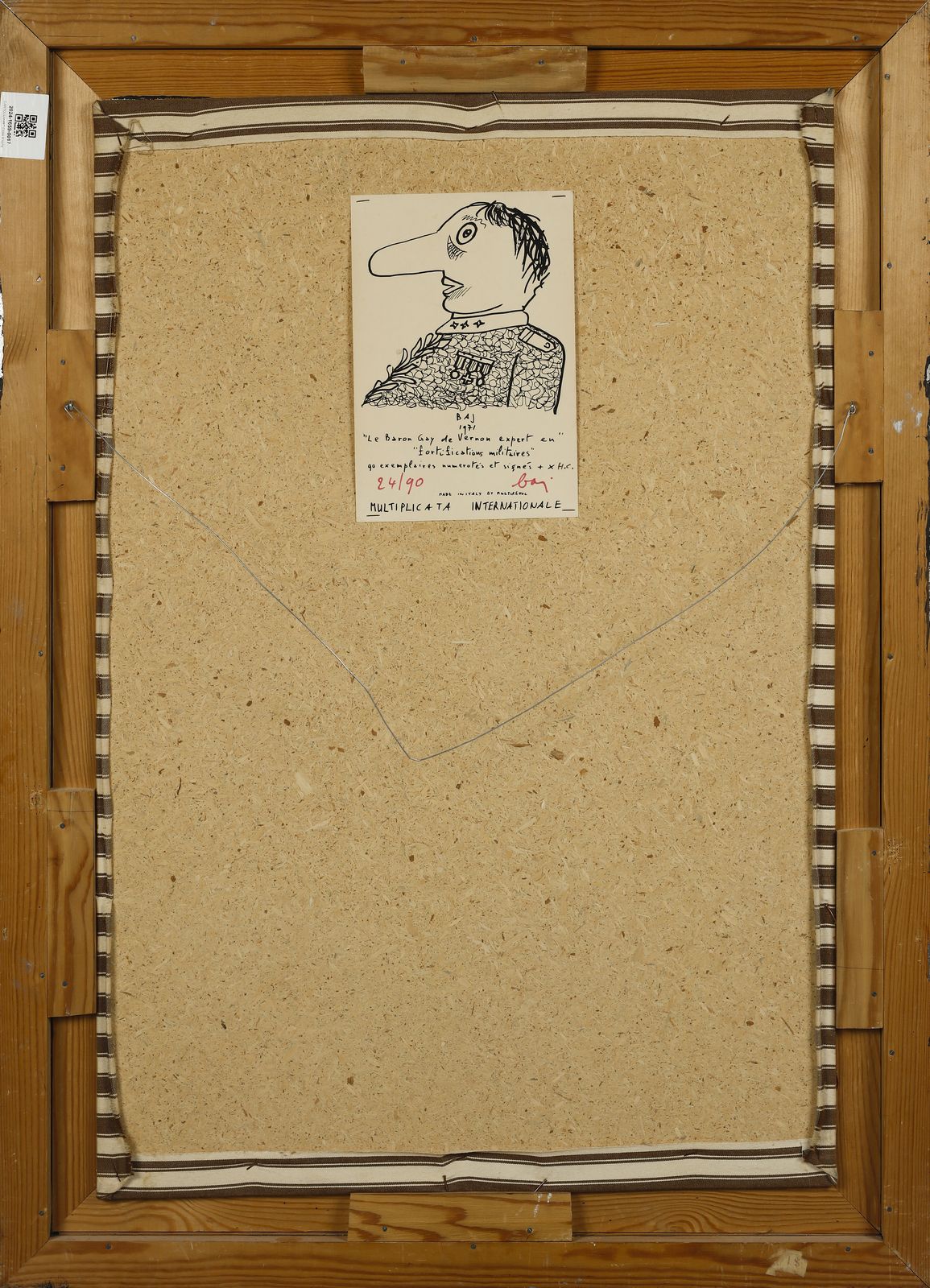 sul retro: etichetta descrittiva con firma e tiratura a pennarello, es 24/90EDIZIONE TOTALE 90 esemplari + X +10 p.d.a.BIBLIOGRAFIACatalogue de l'oeuvre graphique et des multiples d'Enrico Baj, Vol. II 1970 - 1973, Jean Petit, Genève, n. 29, p.99 (ill.)