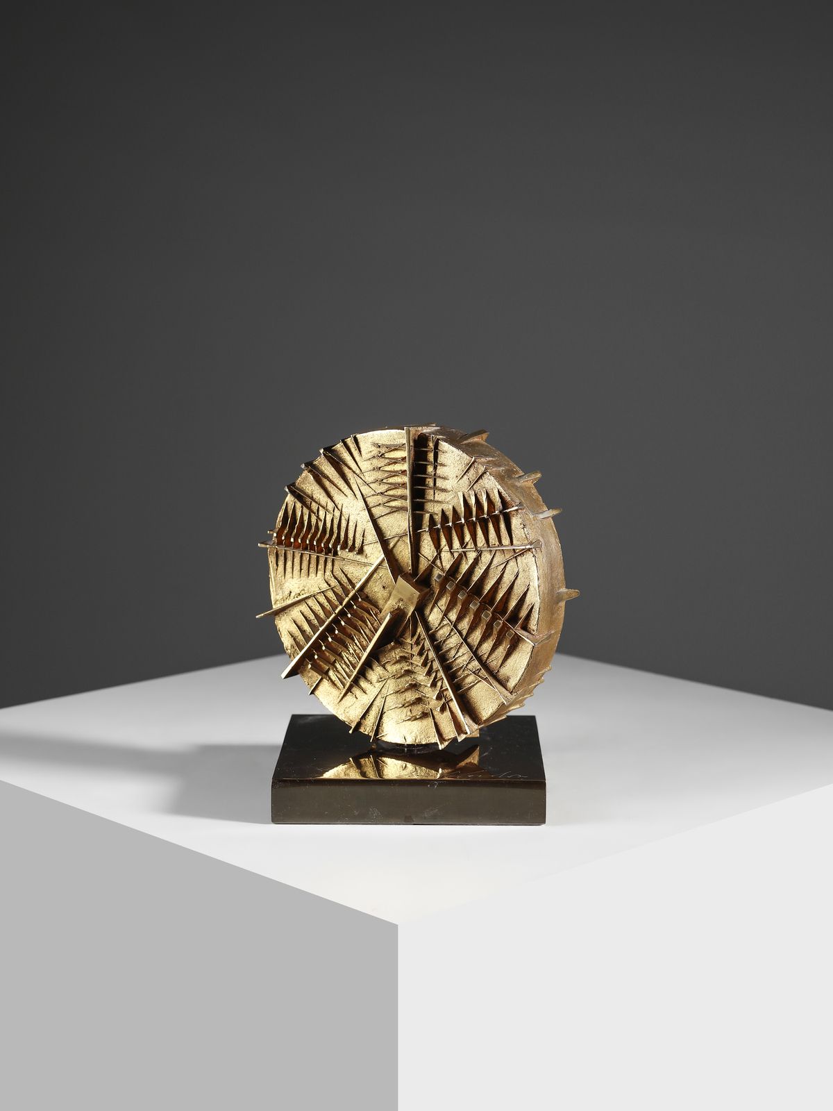 firma, tiratura, data e dedica ad personam incise, es. 11/300diametro: 15 cmfusione a cera persa, Microfonderia Geccherle, Milano e Fonderia Artistica F.lli Bonvicini, Caselle di SommacampagnaEDIZIONE TOTALE300 esemplari numeri arabi + prove d'artistaL'opera č registrata nela Catlogue Raisonné - sez Multipli, Fondazione ARnaldo Pomodoro, con il n. M/84/5BIBLIOGRAFIA DI RIFERIMENTONovo F., Artisti per la vittoria, in Quadrifoglio, Arese, n. 59, marzo 1997, pp. 46-49 (altro esemplare)