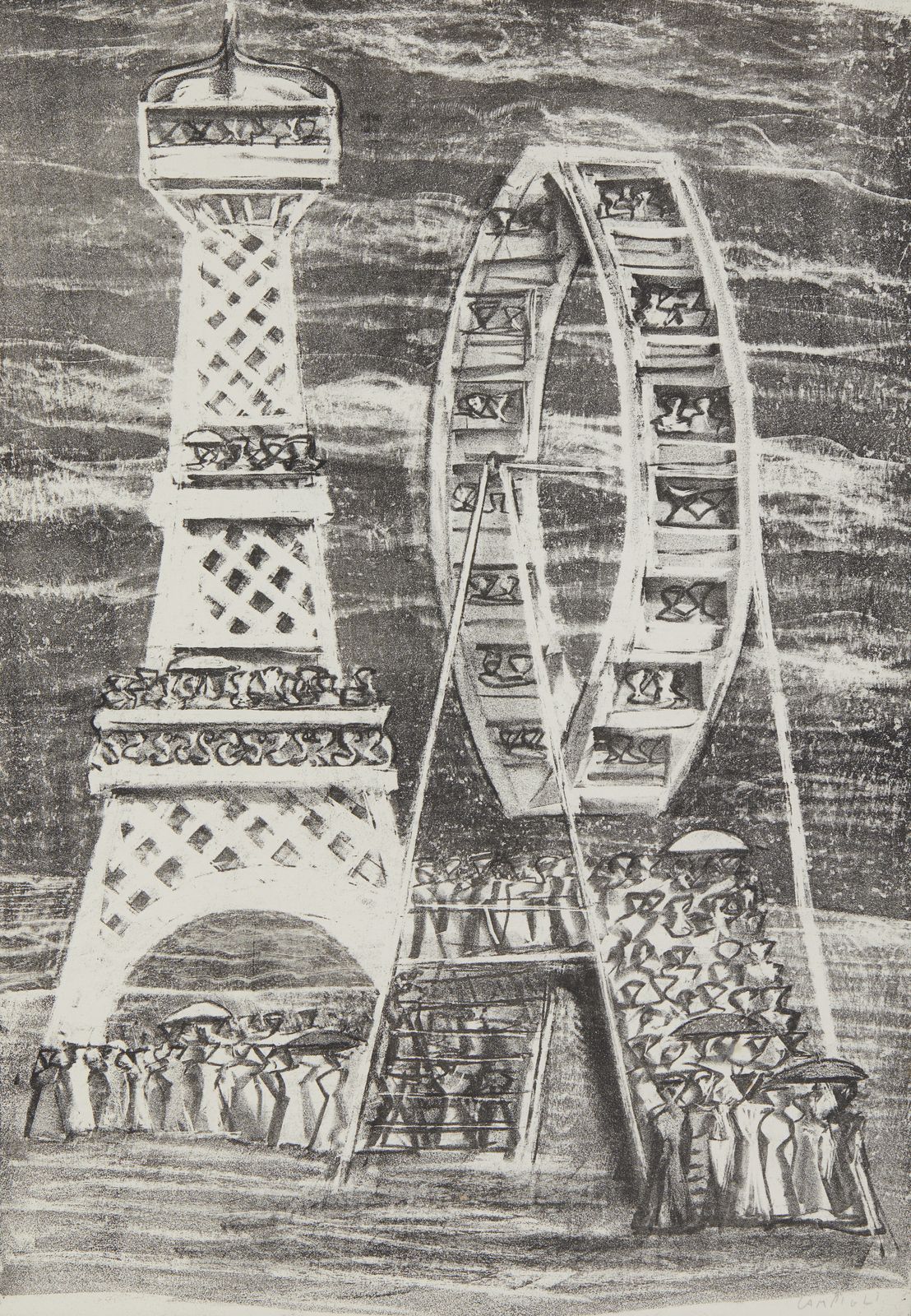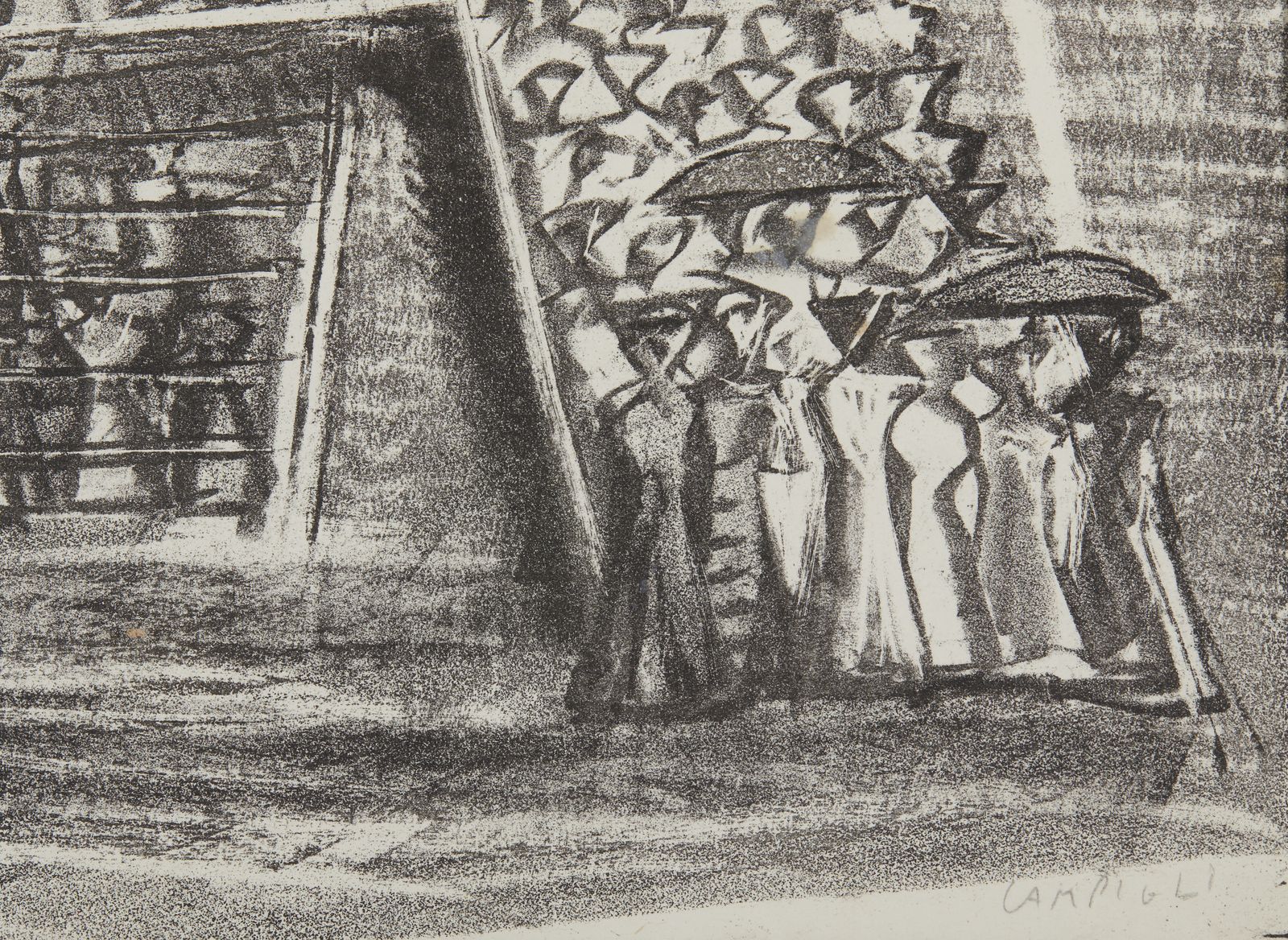 firma in basso a destradimensioni lastra: 48x 35,5cmprova, in basso a sinistra (esemplare unico)l'opera è accompagnata da autentica a cura de La Casa dell'Arte, Sasso Marconi, Bologna e da dichiarazione di autenticità a cura di Eva und Marcus Weiss, dell'Archivo Weiss, MonacoPROVENIENZALa Casa dell'Arte, Sasso Marconi, BolognaCollezione privata, BologaESPOSIZIONIGalleria La casa dell'arte - centro di cultura e di informazione, La matita e il bulino di maestri del Novecento, Sasso Marconi, Bologna 13 maggio - 25 giugno 1978BIBLIOGRAFIAF. Meloni, L. Tavola Campigli. Catalogo ragionato dell'opera grafica (Litografie e incisioni) 1930 - 1969, Livorno 1995, p. 122, n. 148.Galleria La casa dell'arte - centro di cultura e di informazione, La matita e il bulino di maestri del Novecento, Sasso Marconi, Bologna 1978 (n.p)Di questa litografia, a differenza di quanto accade per le altre dello stesso Campigli, la tiratura è molto limitata. Secondo Meloni/Tavola ne sono noti solo quattro esemplari: tre prove a colori firmate e datate, una della quali, pastellata in rosso, è nota pure una prova in bianco e nero non firmata. Oltre a queste quattro prove e siste una prova parziale in bianco e nero, conservata nel lascito di Campigli, che non rientra nel novero della tiratura. L'opera qui in esama risulta essere il quinto esemplare ad oggi noto del motivo parigino, tre dei cinque esemplari sono stampati a colori e due sono in bianco e nero.