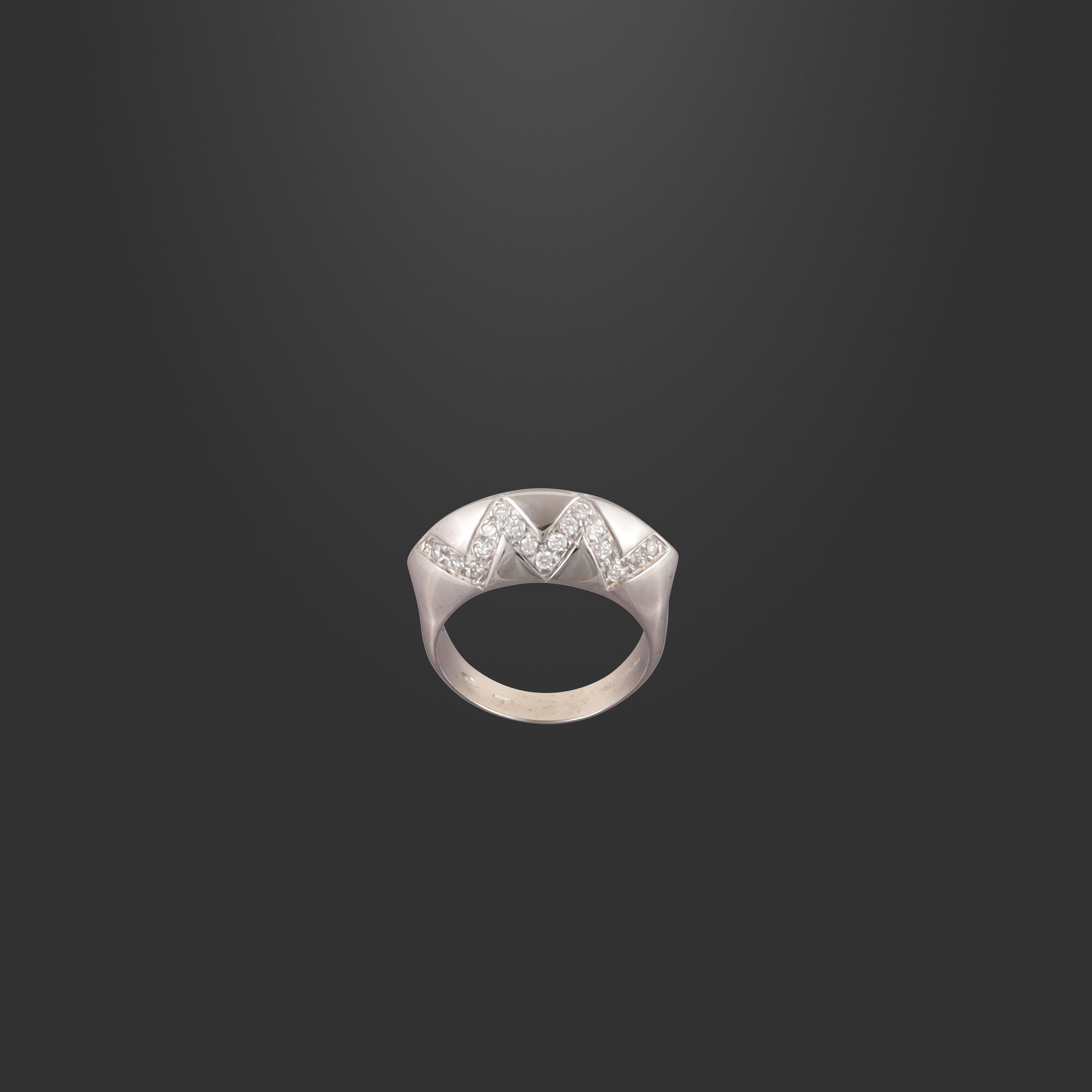 in oro bianco a fascia sagomata con motivo geometrico in brillanti, gr. 8,6. Misura 15,5 Firmato: Blue White