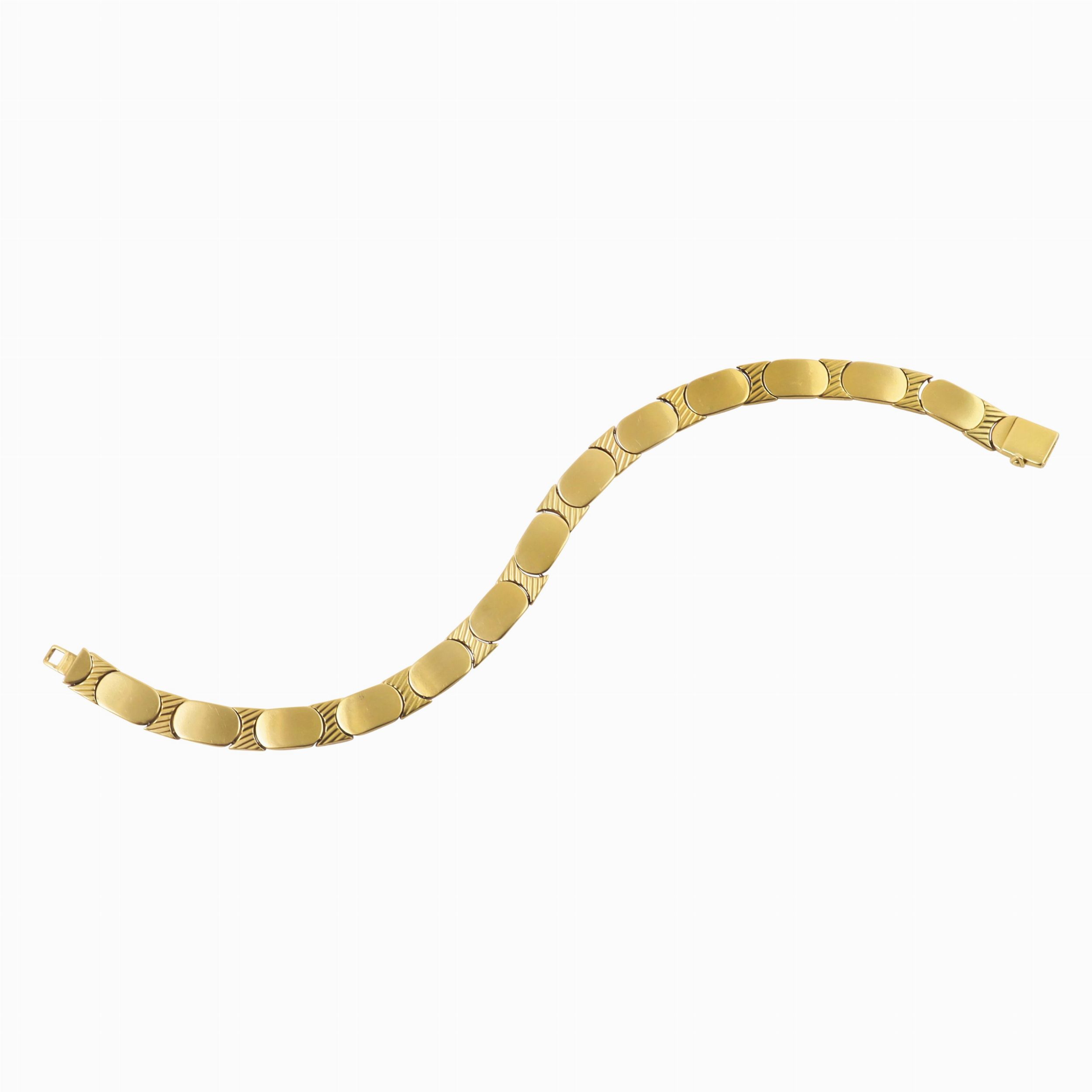 in oro giallo a nastro formato da motivi ovali raccordati da elementi sagomati, gr. 28,2. Lunghezza 19,5 cm Firmato: Adriano Chimento