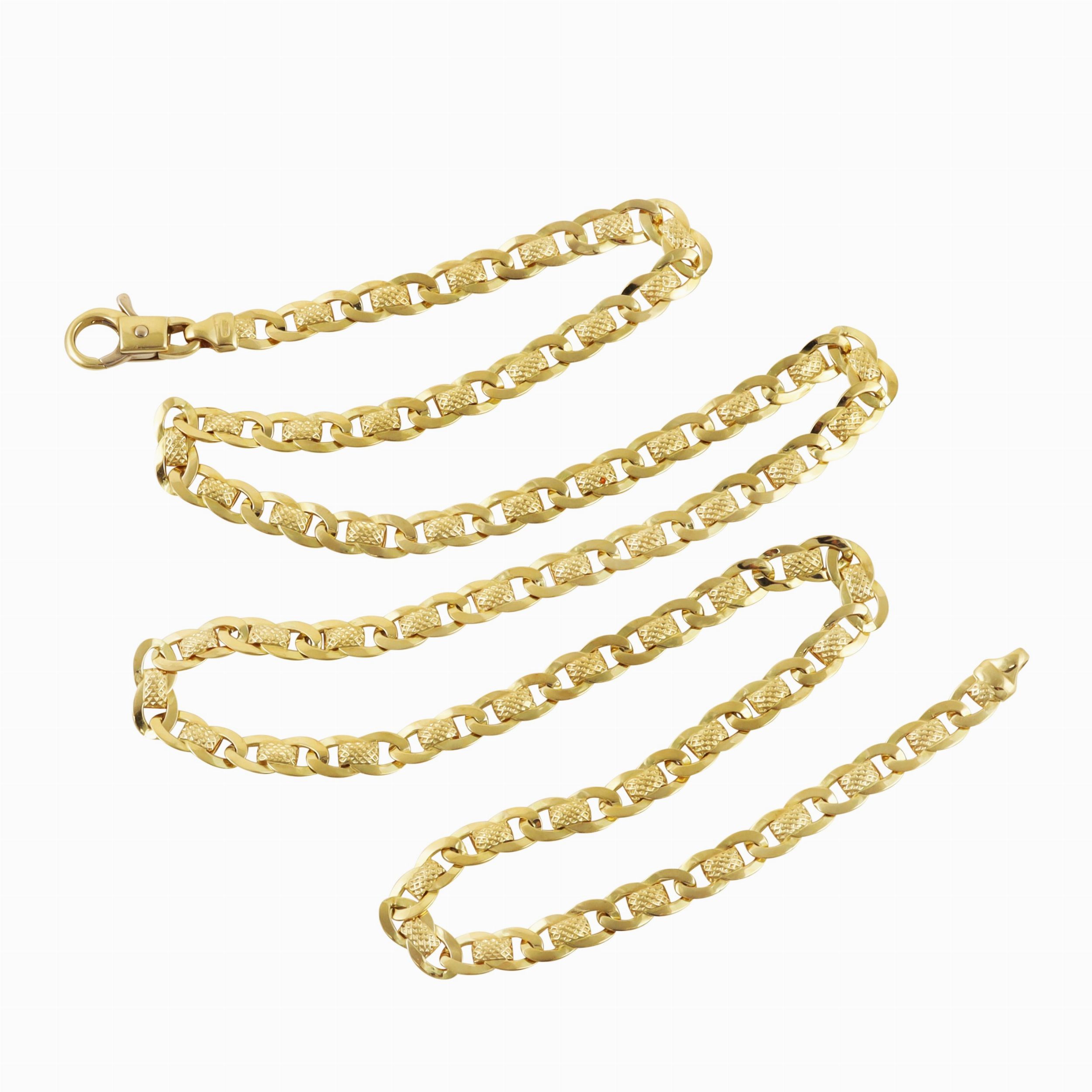 in oro giallo a maglie ovali trattenute da cavallotti zigrinati, gr. 36,1. Lunghezza 60 cm