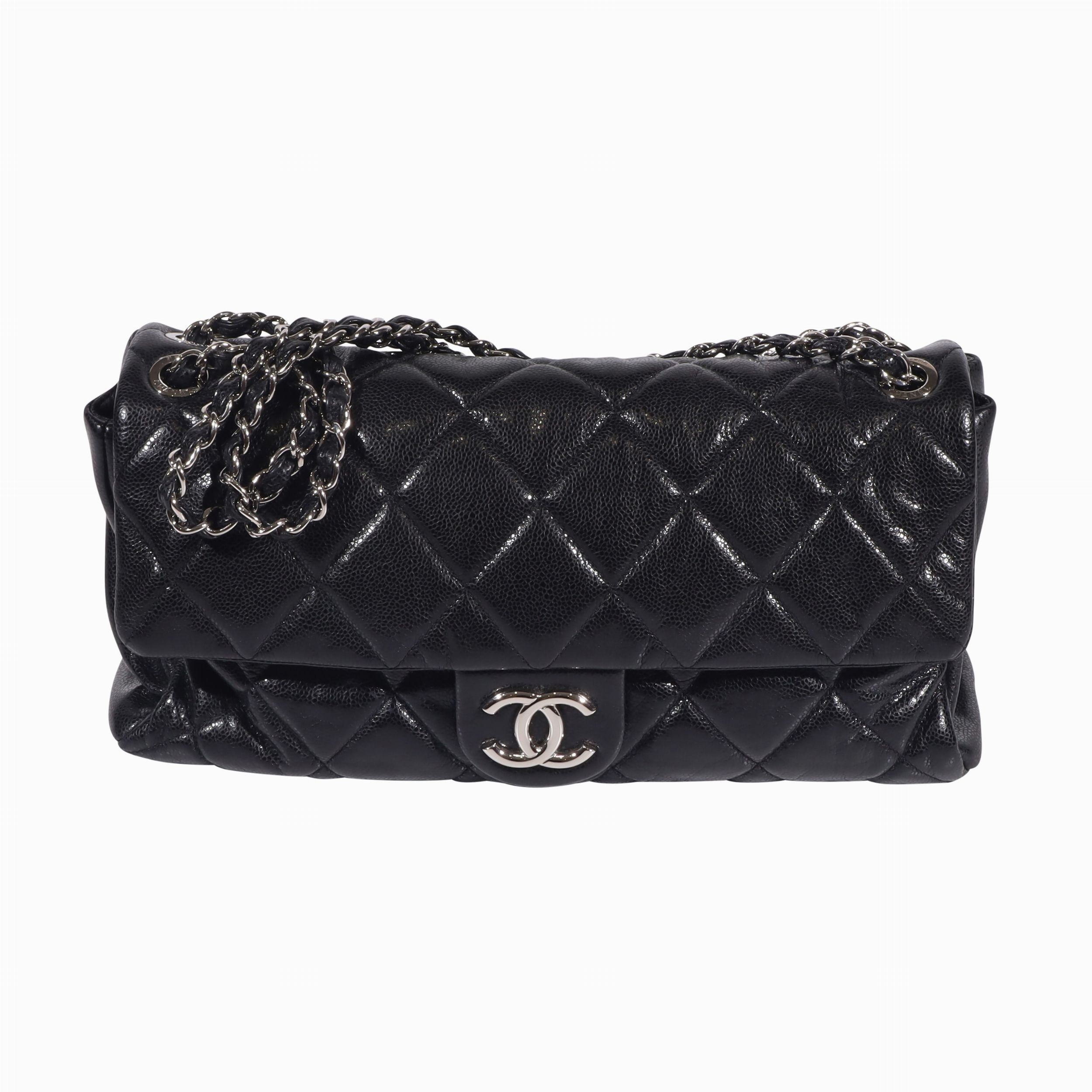 Caviale trapuntata Patta frontale con chiusura magnetica doppia C Tasche interne con zip e slip Corredata di dust bag originale Dimensioni 38 x 11 altezza 18 cm Anno 2009/2010 Condizioni perfette pari al nuovo