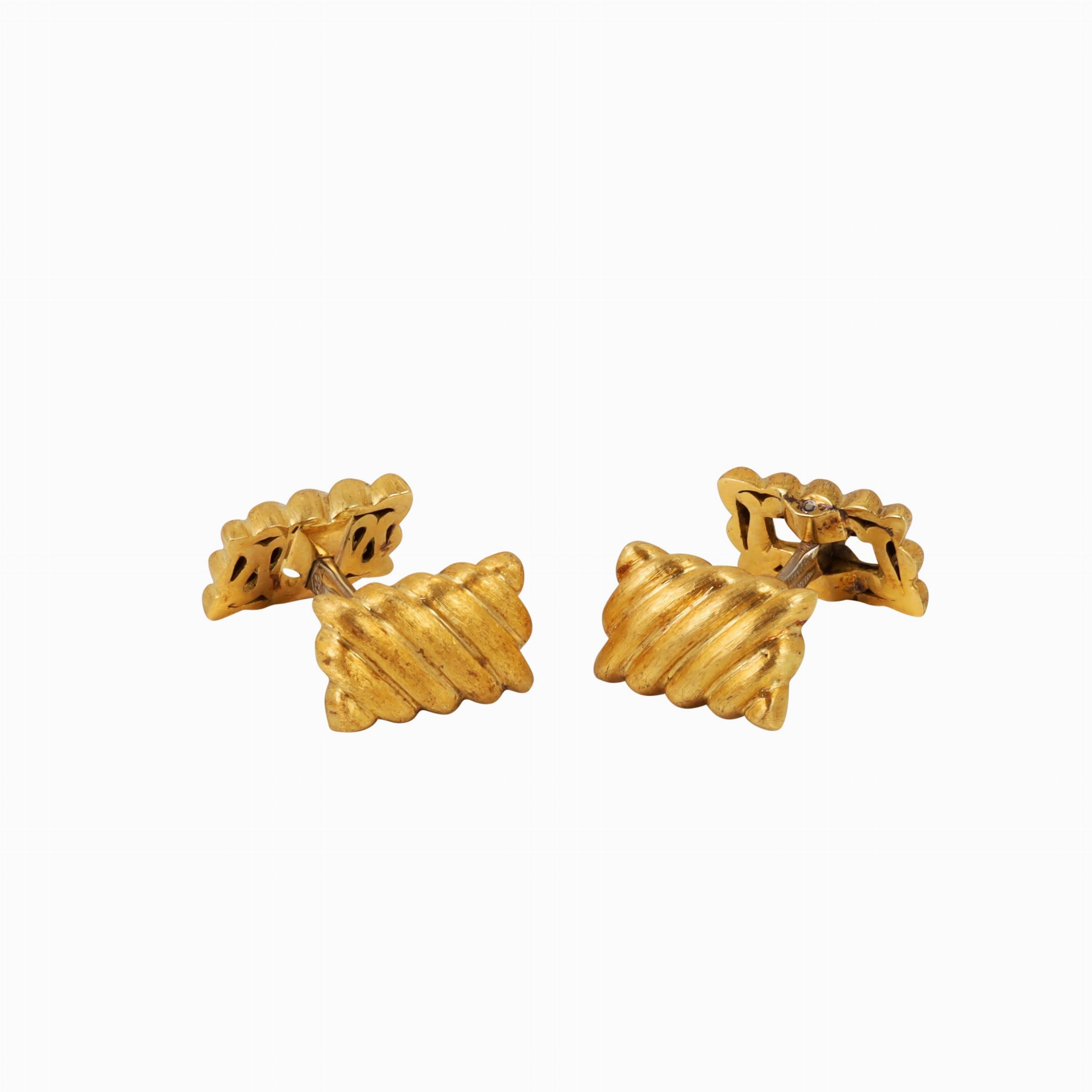 in oro giallo satinato a forma rettangolare con scanalature oblique, gr. 16,1. Numerario: 363 MI (Masella Riccardo - Milano)