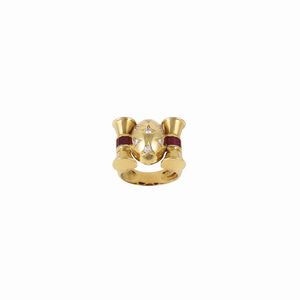 in argento a corpo ovale espanso con baccellature, decori a volute sbalzati e puntinati, analogo decoro ripreso [..]