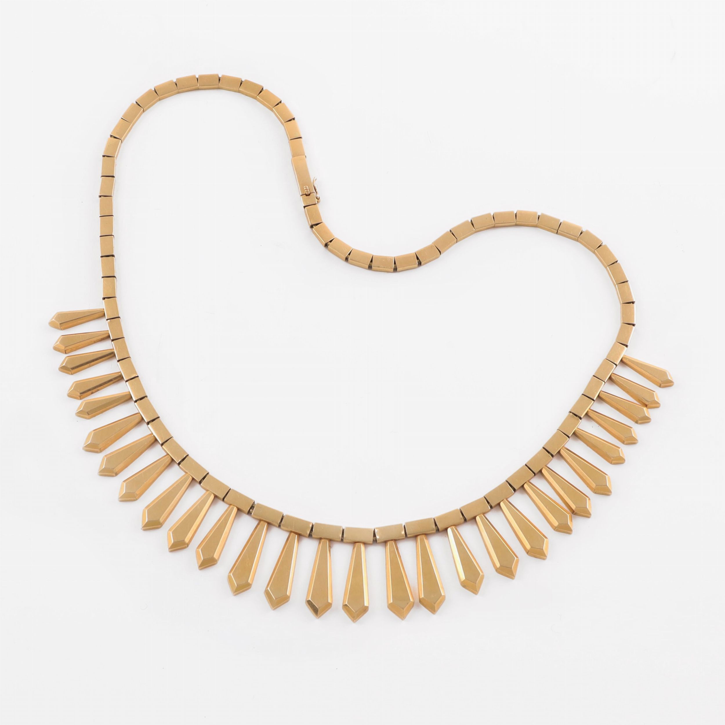 in oro rosa costituito da elementi geometrici con frangetta anteriore, gr. 40,7. Lunghezza 40,5 cm Numerario: 15VR (Weingrill Carlo s.p.a. - Verona)