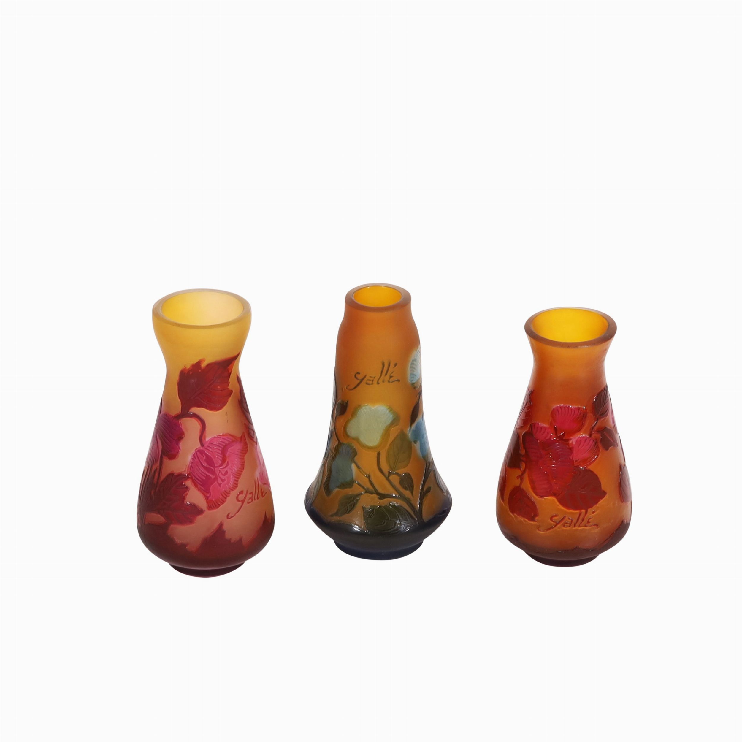 in vetro cammeo con decori floreali. Altezza 13 cm e 12 cm ca. Recano l'inscrizione: Gallé