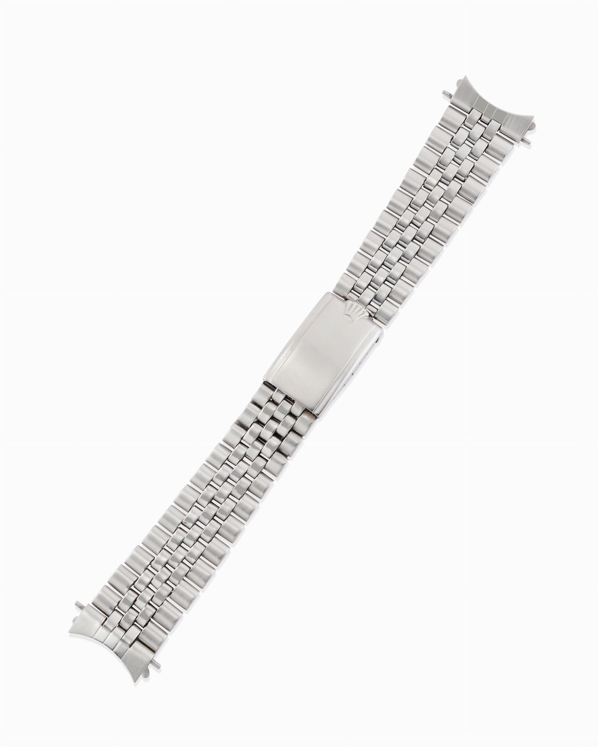 anni 70 Bracciale Jubilee in acciaio a maglie ripiegate, finali 55.