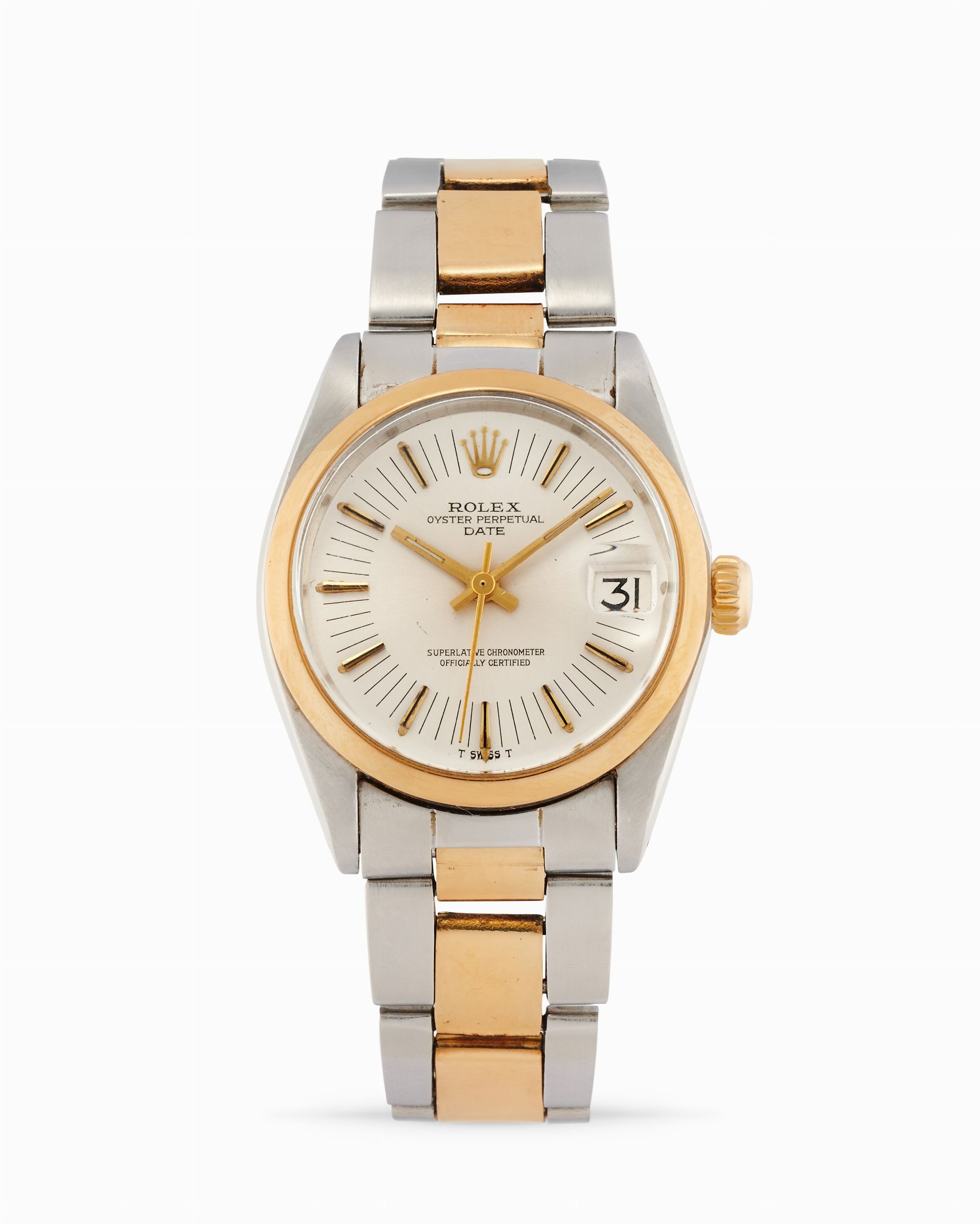 anni 70 Cassa rotonda in acciaio, n.4038954, lunetta liscia in oro 18k. Quadrante argenté, indici applicati e dipinti. Movimento a carica automatica. Bracciale Oyster 7835 in acciaio e oro a maglie ripiegate. Dimensioni: 31 mm.