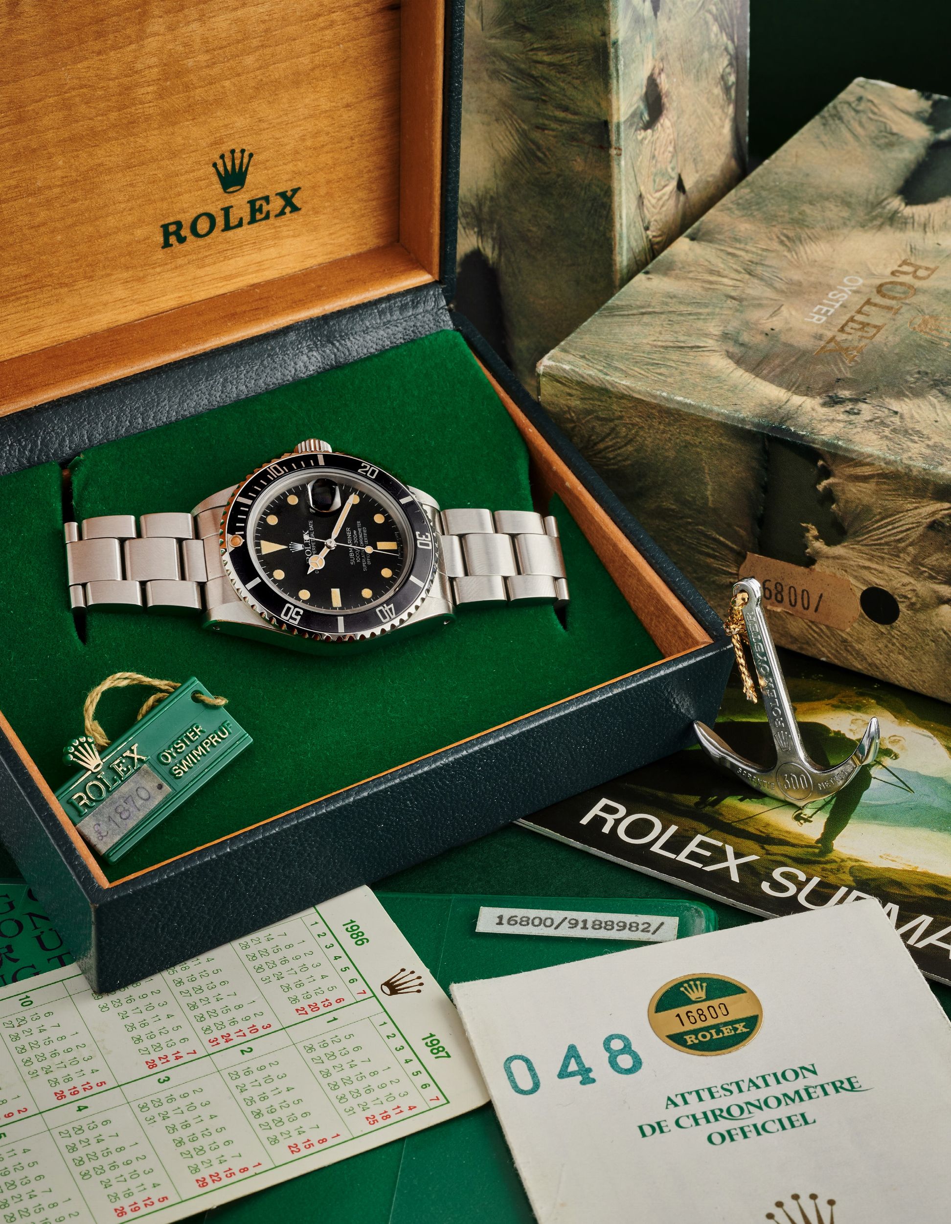 anni 80 Cassa rotonda in acciaio, n.9188982, ghiera girevole in acciaio, lunetta nera in alluminio. Quadrante nero, indici luminescenti. Movimento a carica automatica, cal.3035. Bracciale Oyster 93150 in acciaio. Dimensioni: 40 mm. Accompagnato da garanzia, custodia in pelle, libretti, calendario, ancoretta, cartellino con prezzo e numero di serie, scatola e controscatola Rolex.