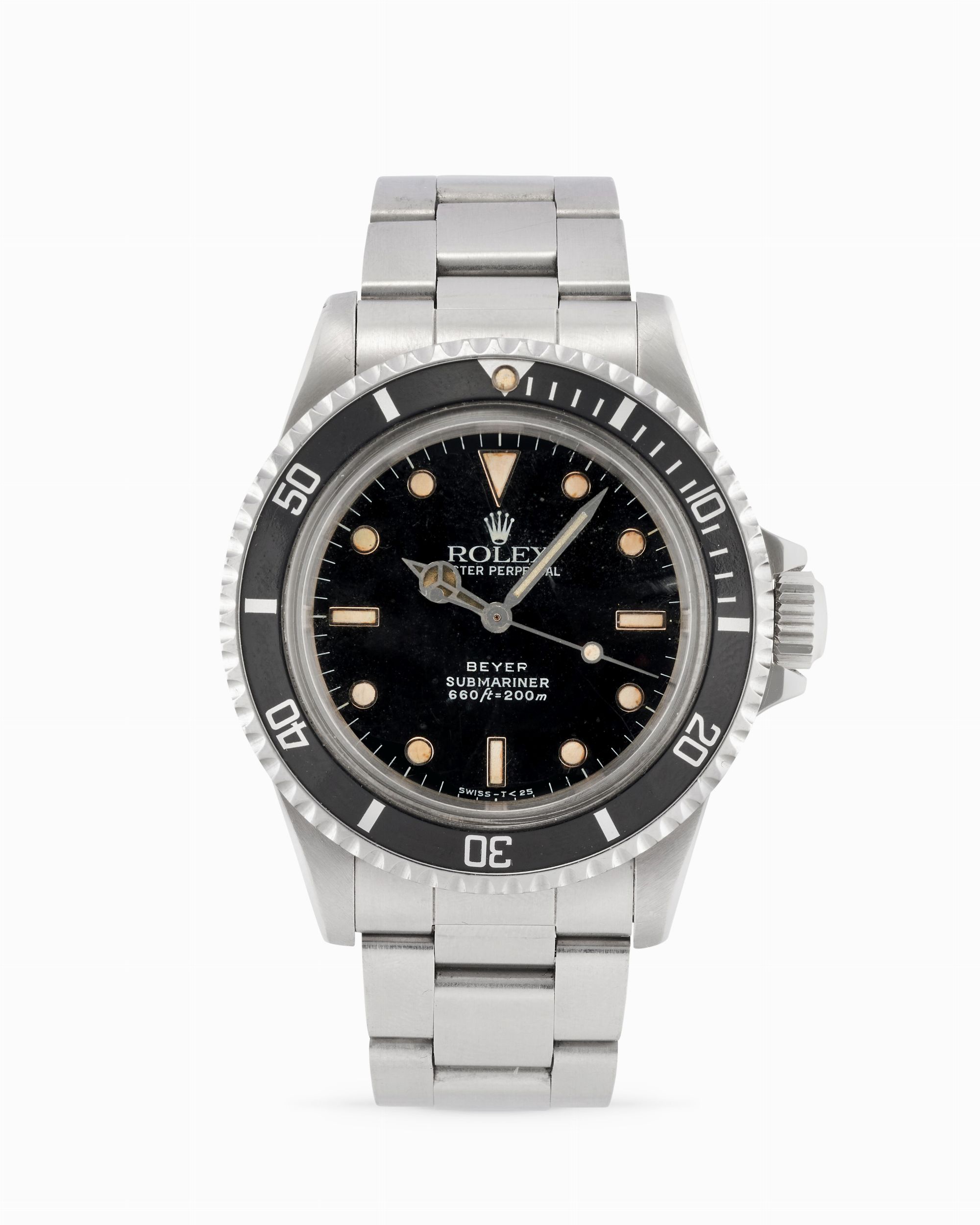 anni 80 Cassa rotonda in acciaio, n.R902181, ghiera girevole in acciaio, lunetta nera in alluminio. Quadrante nero, indici applicati luminescenti. Movimento a carica automatica, cal.1520. Bracciale Oyster 93150 in acciaio. Dimensioni: 40 mm.