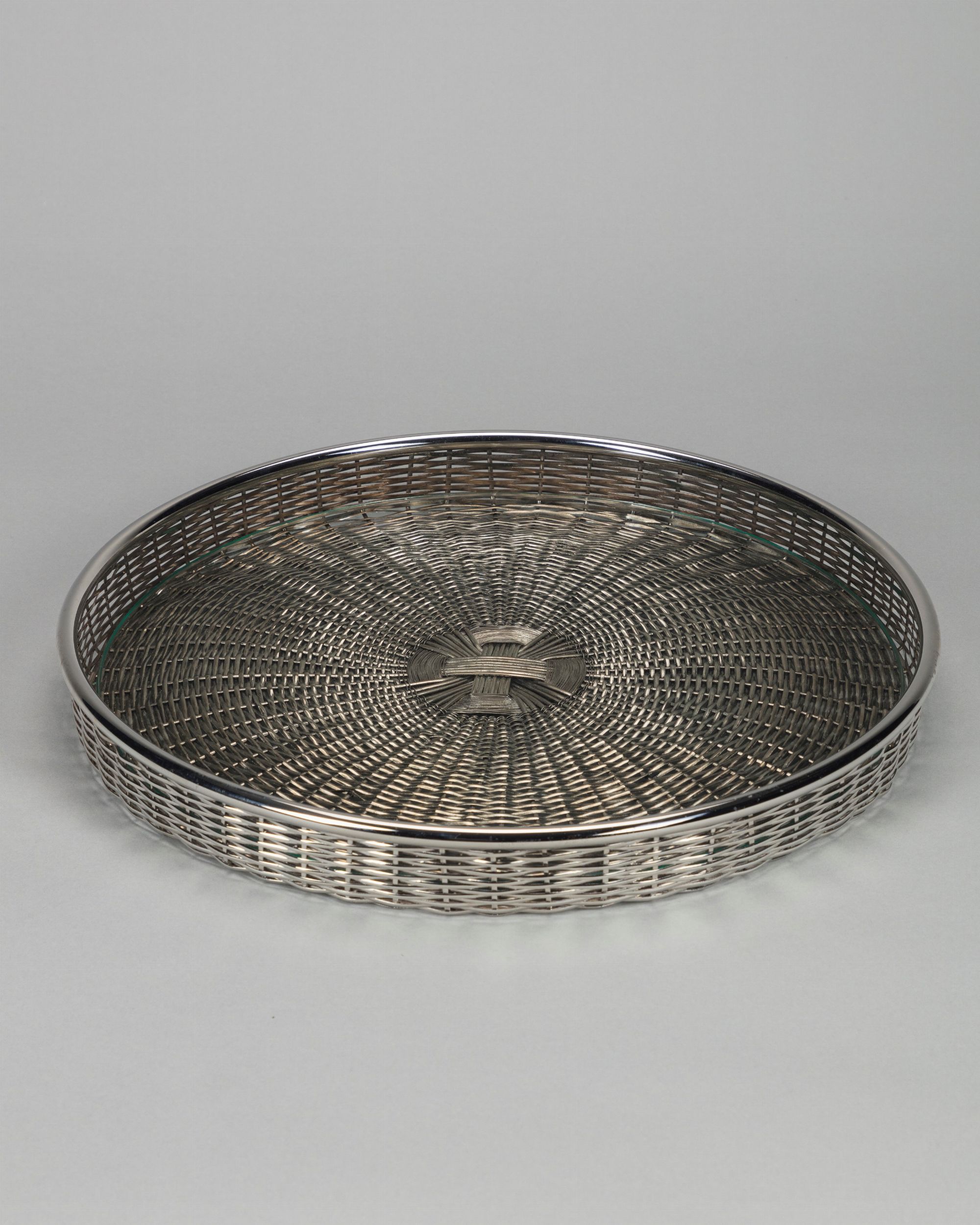 1980 ca. in metallo argentato e intrecciato e vetro Produzione Argenterie Sabattini marchio incusso sotto la base confezione originale
