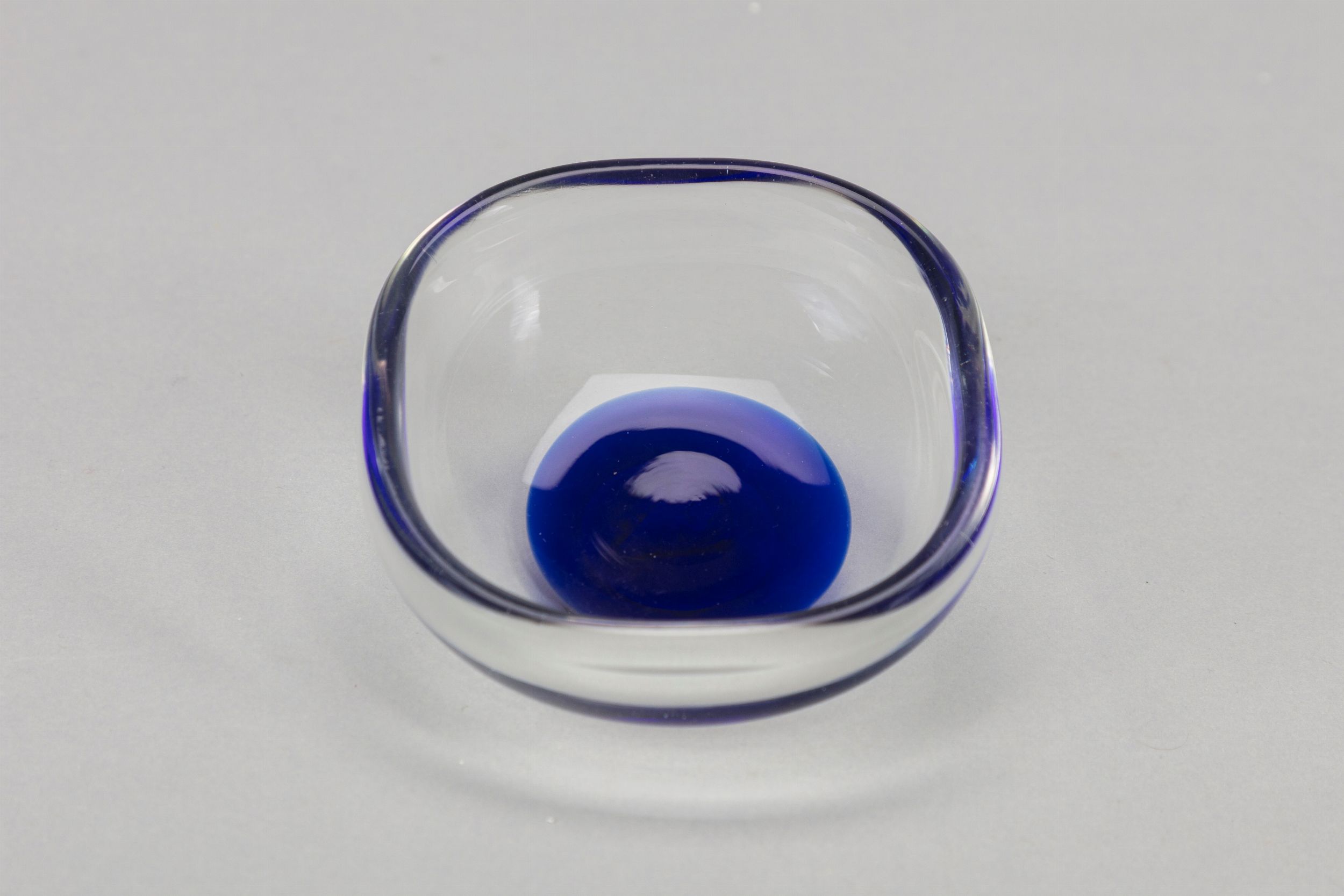 1985 in vetro soffiato trasparente e blu Produzione Venini Murano firma incisa sulla base Venini Italia '85