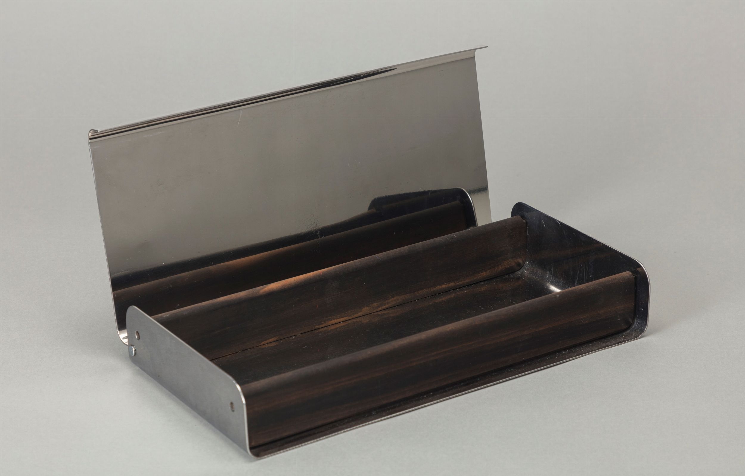 1960 modello grande, scatola in legno e acciaio. Produzione Danese Milano, timbro incusso