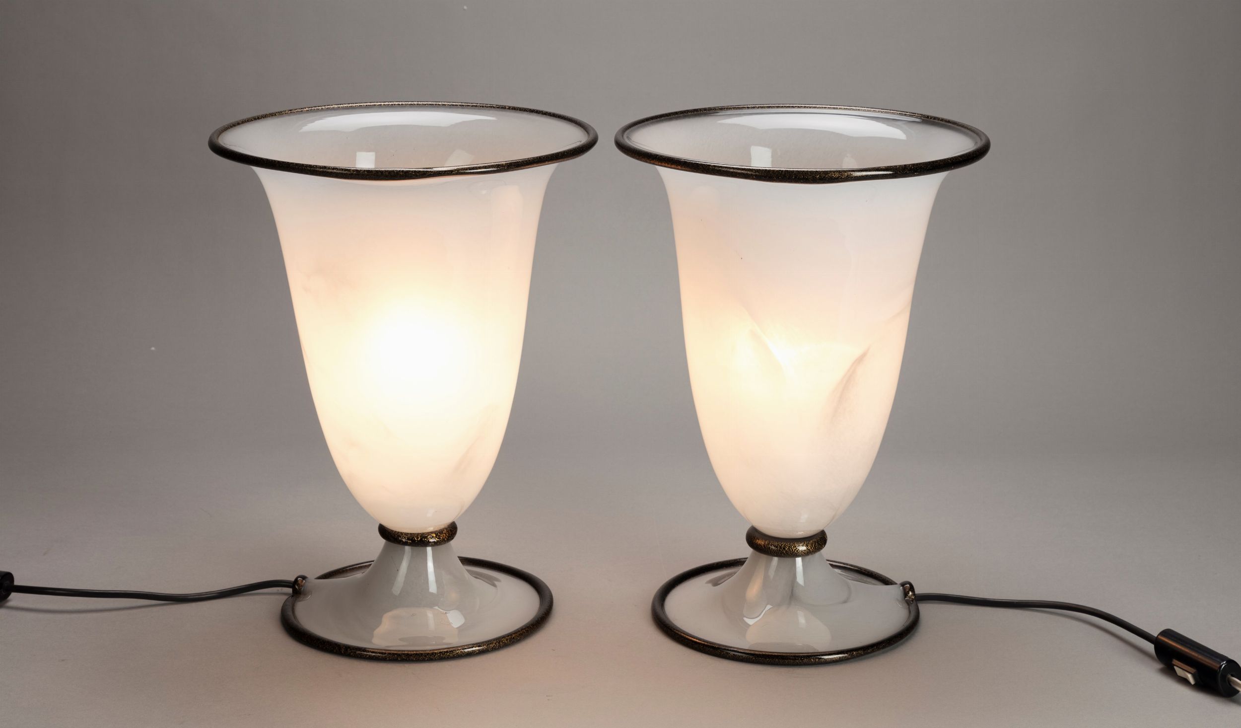 1970 ca. in vetro soffiato di murano bianco e traslucido e bordi in vetro nero e oro Produzione Barovier & Toso
