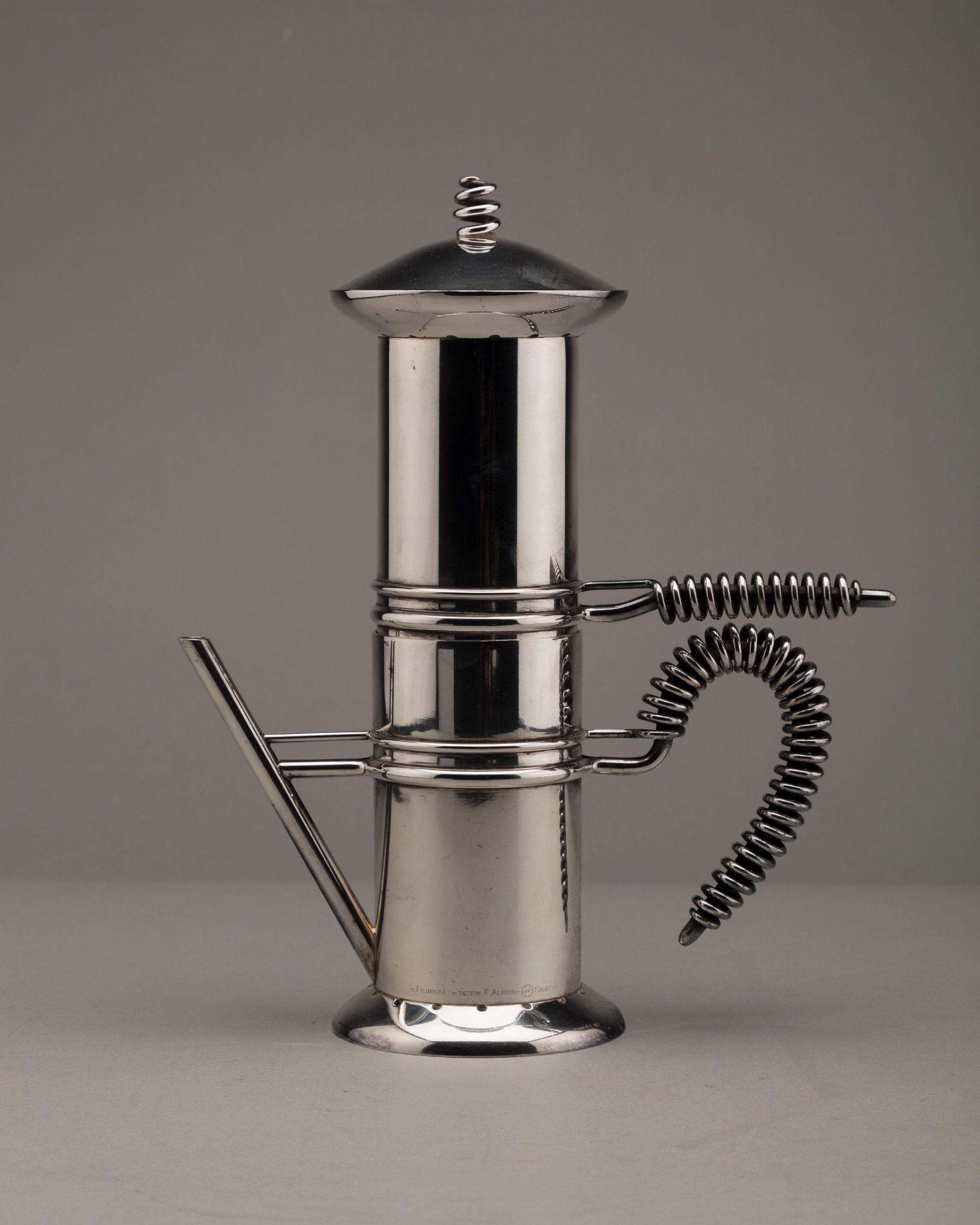 1986 caffettiera in metallo argentato Produzione Argenteria Sabattini firma incussa sul fianco