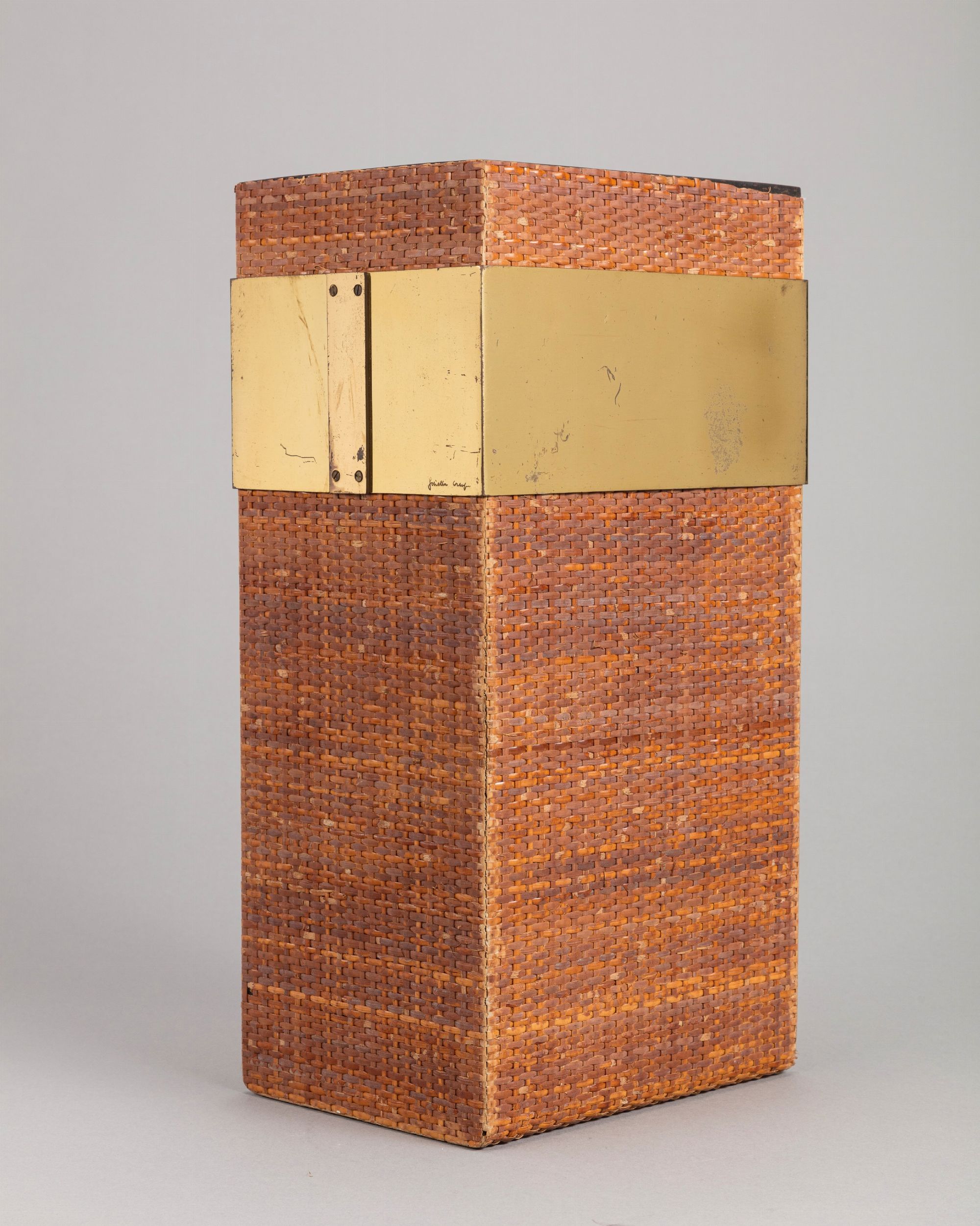 1970 ca. in rattan, materiale plastico e ottone patinato Produzione Gabriella Crespi, Italia firma incisa sul metallo