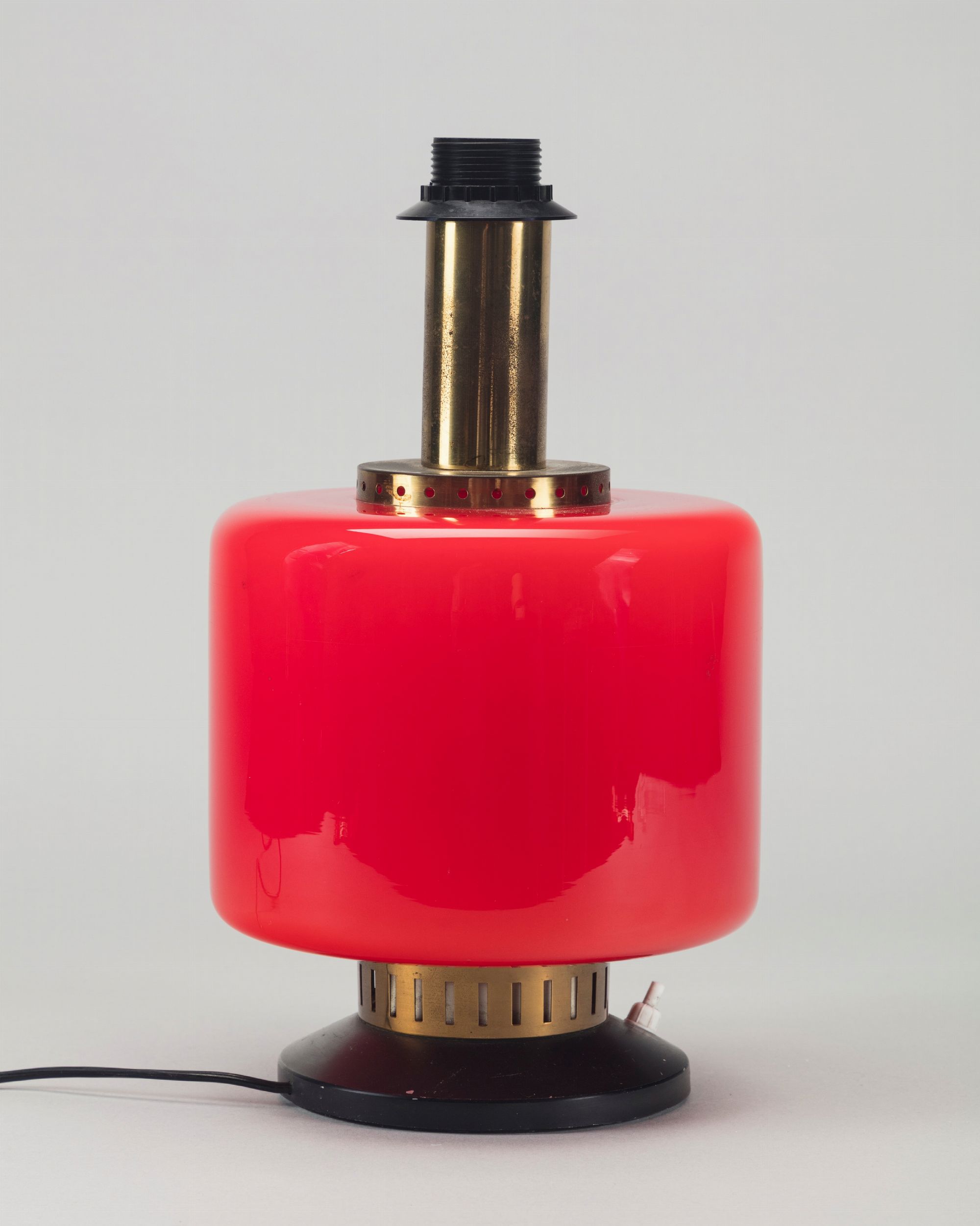 1960 ca. in alluminio verniciato, ottone nichelato e vetro incamiciato Produzione Stilnovo