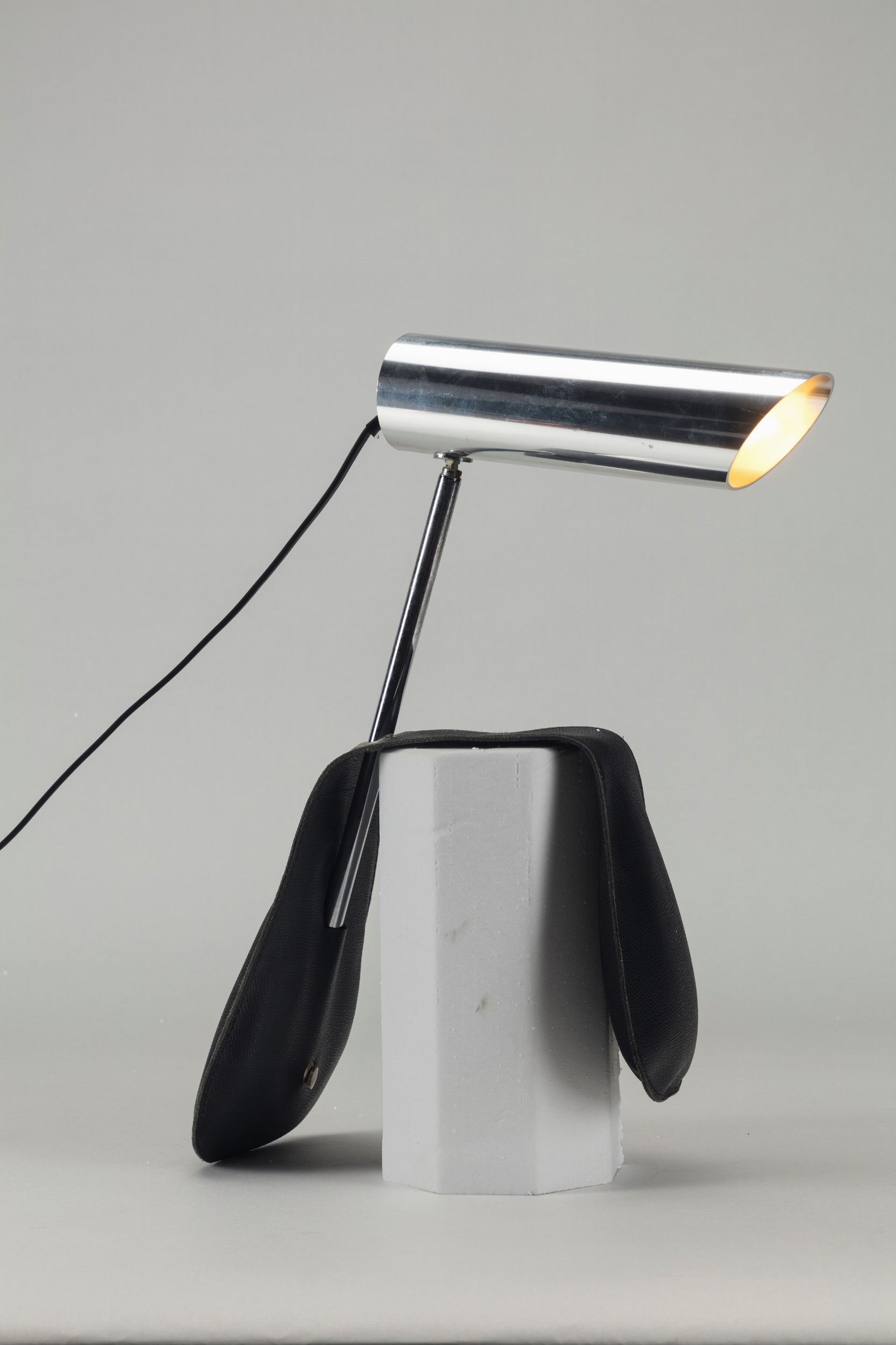 2000 ca. lampada da lettura in metallo cromato e pelle Produzione Candle etichetta originale