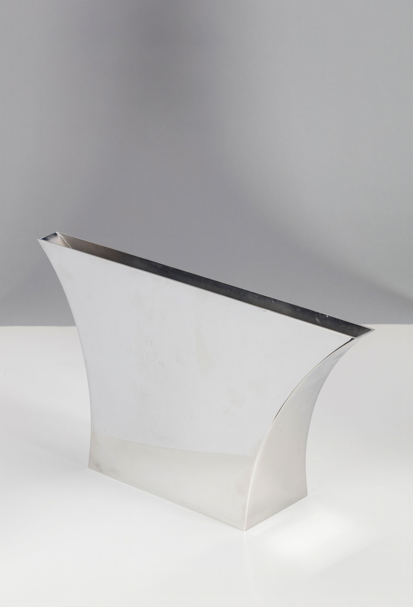 1970 ca. vaso ornamentale in metallo argentato Italia Etichetta originale 'Dalmasso'