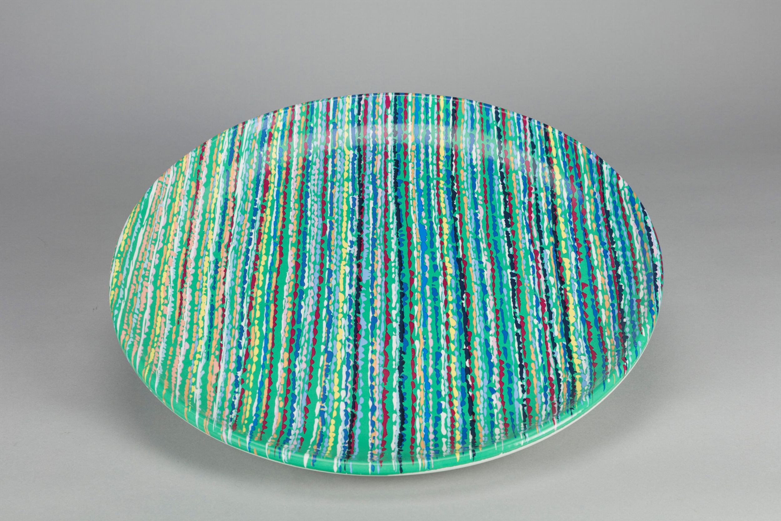 1990 ceramica smaltata policroma Parte della serie di n. 500 piatti ideati da Piero Dorazio per SDA Bocconi Eseguiti dalla Ceramiche d'arte San Marco di Nove (Vicenza) Firmato al verso: Piero Dorazio