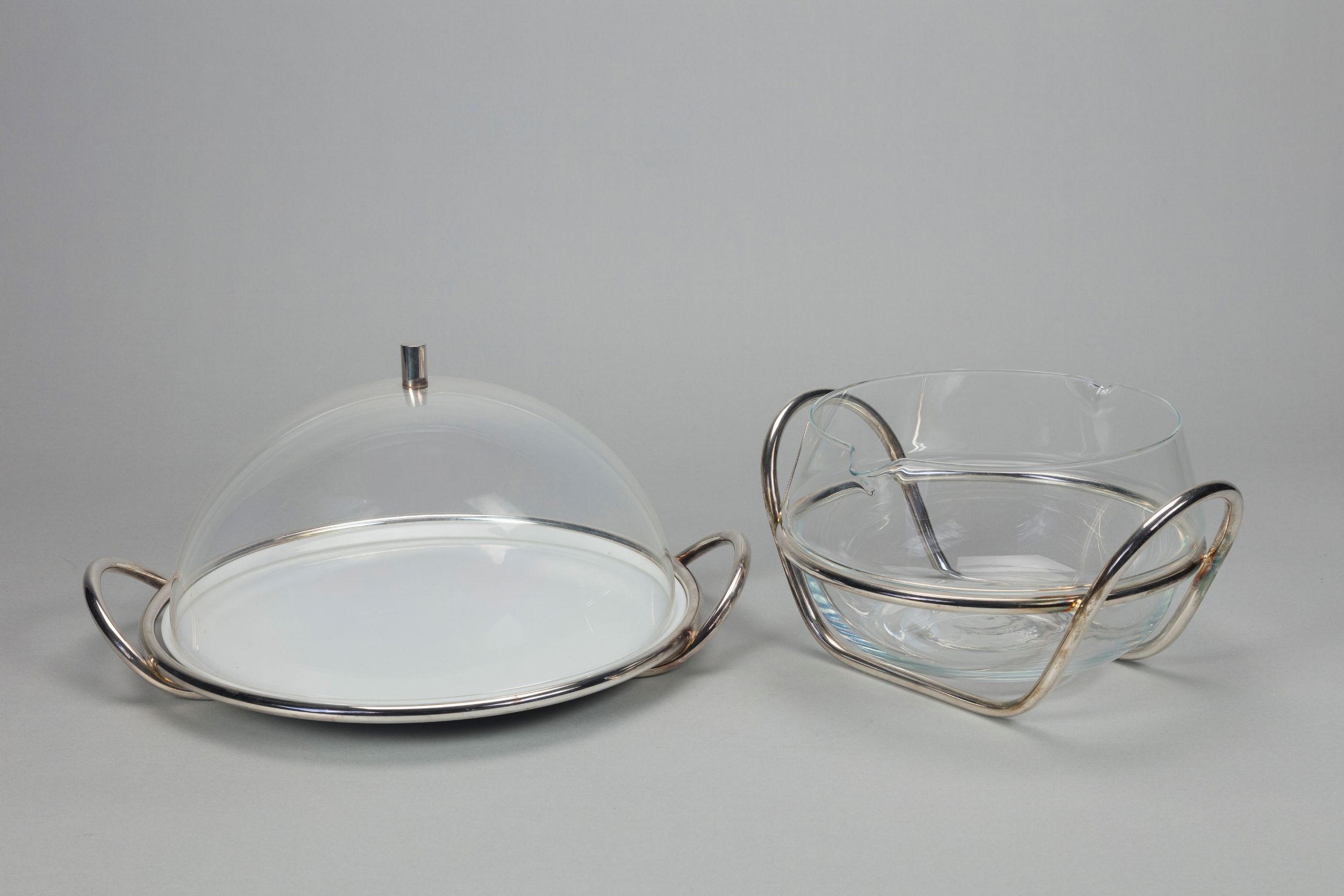 1980 ca. in vetro, ceramica e metallo argentato Produzione Argenteria Sabattini firma incussa sul metallo